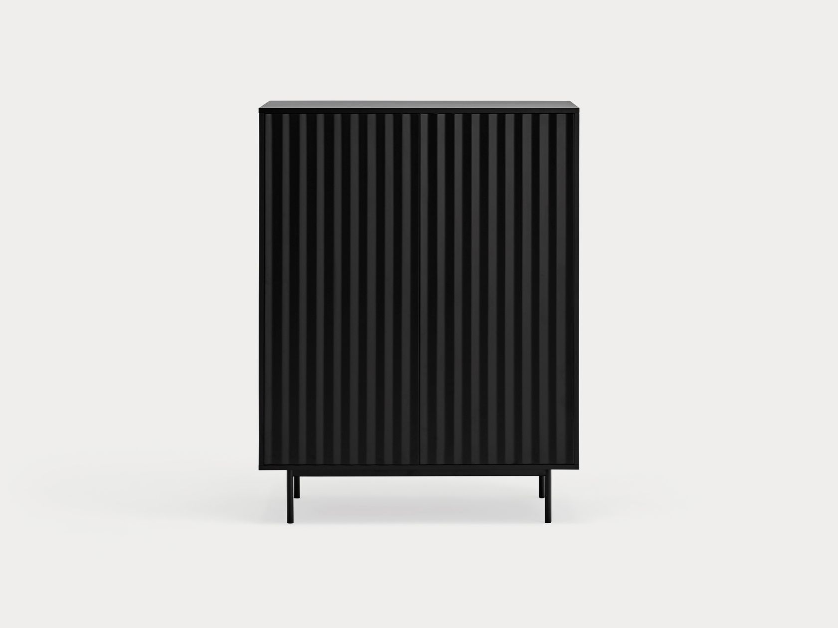 12758_TE WhiteLa mayor característica de la colección Sierra es la peculiaridad de sus texturas y formas interactuando de distinta manera según el entorno. El mueble presenta sobre sus frontales un relieve dentado particular de la colección. Está realizado en DM lacado en diferentes colores e incorpora apertura y cierre de puertas con push. Incorpora una pata de apoyo regulable para un ajuste a la perfección ante cualquier desnivel del suelo.