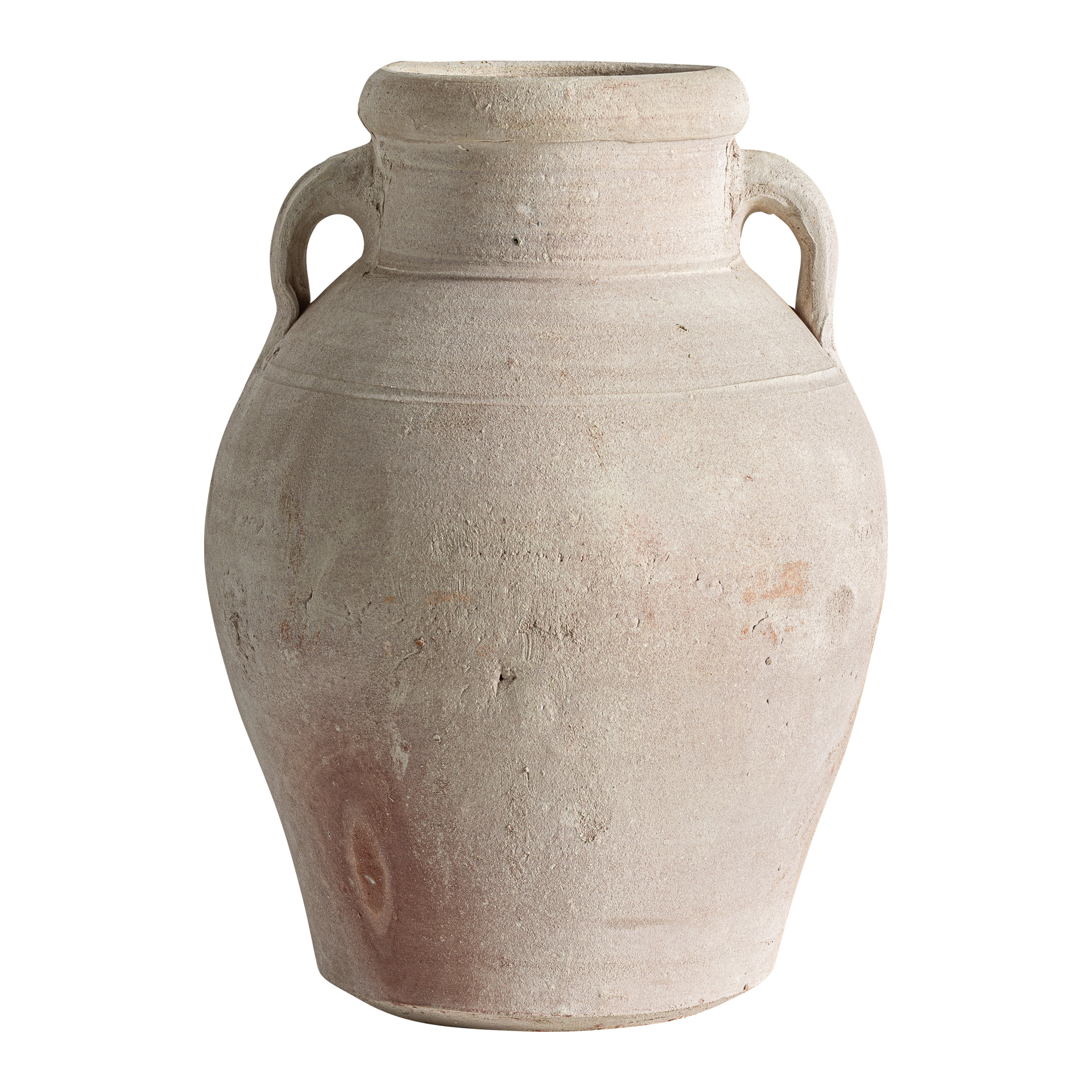 Ánfora Kowalski de estilo clásico fabricado en arcilla en color blanco roto con acabado envejecido.