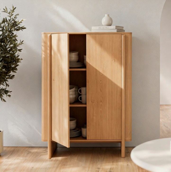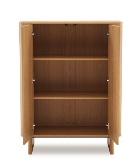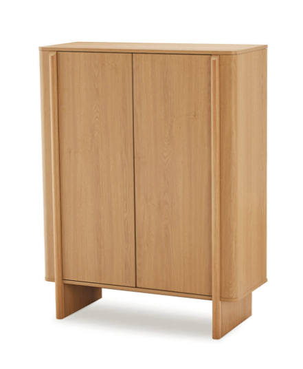 Con una presencia vertical que estiliza el espacio, el aparador alto de la colección SIDNEY se presenta como una pieza elegante y funcional, ideal para optimizar el almacenaje sin sobrecargar el ambiente. Realizado en melamina, su acabado natural deja ver la veta de la madera, aportando luminosidad y una calidez serena que encaja fácilmente en interiores actuales.