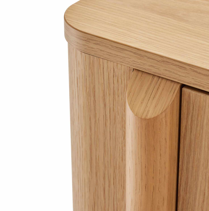 Las puertas, de líneas suaves y continuas, incorporan un sistema de apertura push que mantiene el diseño limpio y sin elementos visibles. En formato mueble kit, está pensado para facilitar el transporte y el montaje, ofreciendo una estructura estable y bien proporcionada una vez instalado.
