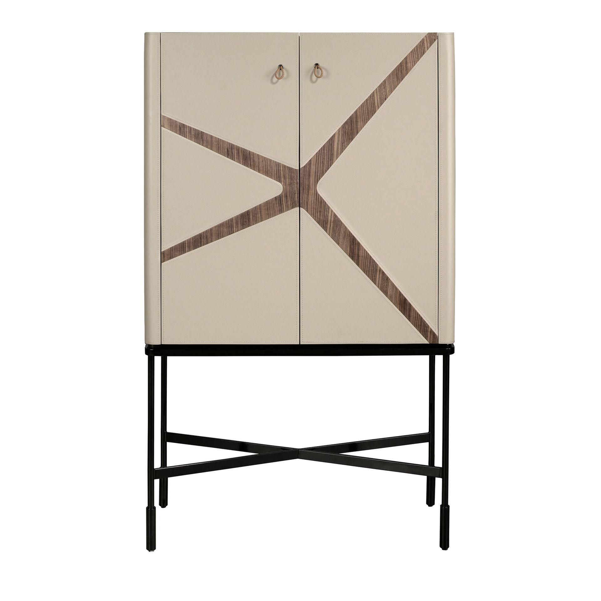 Aparador alto polipiel, nogal y acero negro
