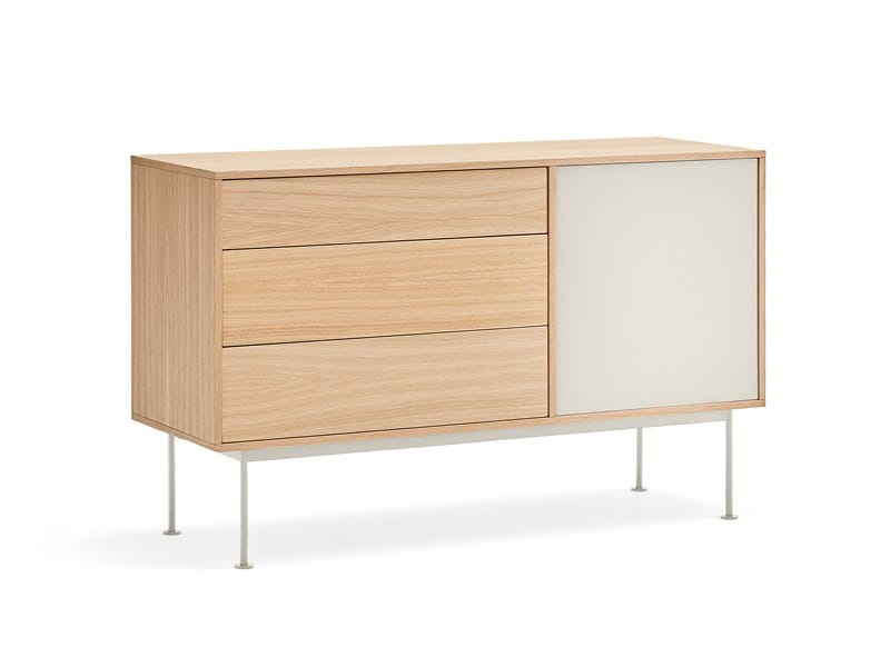 Yoko está realizado en chapado de roble a excepción de los frontales de color, hechos en MDF lacado. Las patas son metálicas y están lacadas en el mismo color que los frontales.Yoko is a collection that aims, through its simplicity and versatility, to offer a modern furnishing solution suited to the needs of contemporary homes.