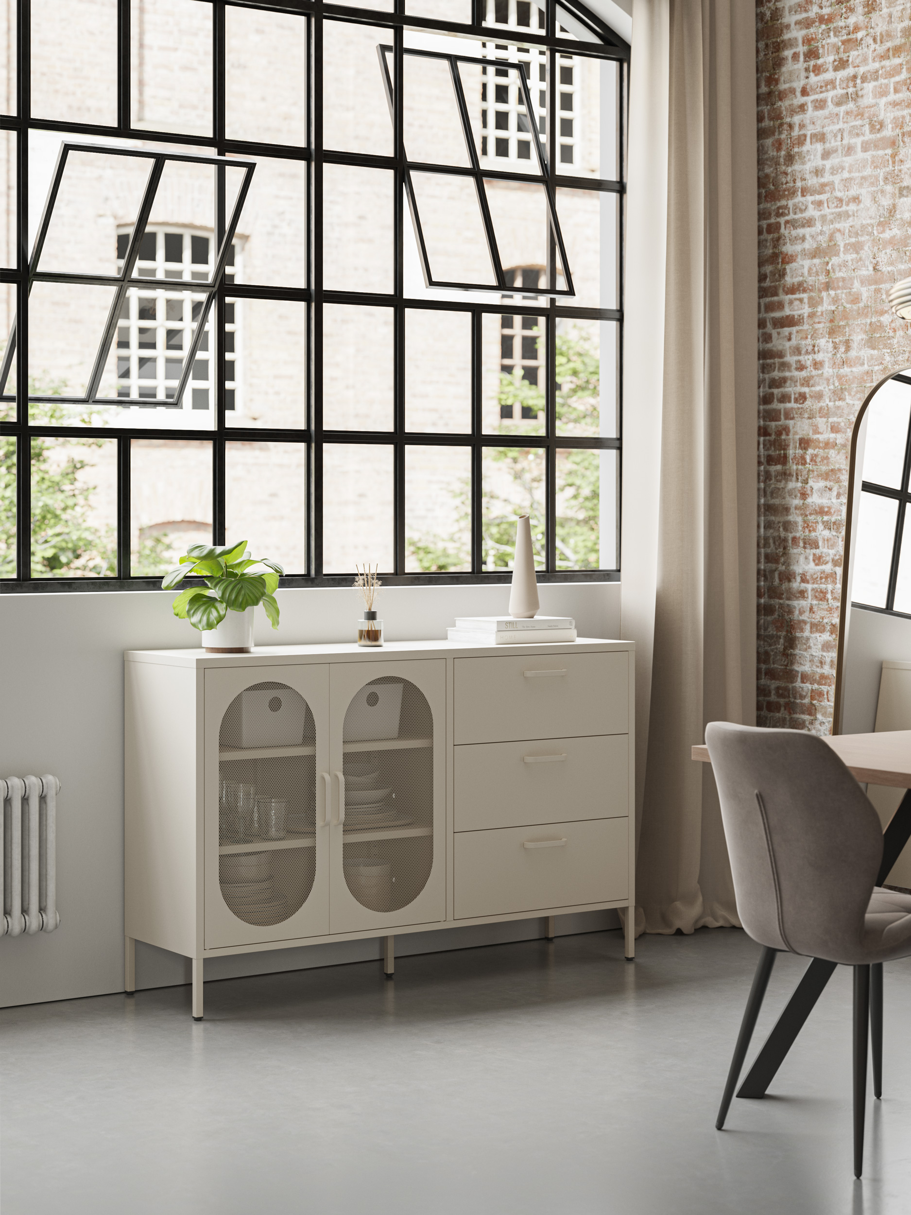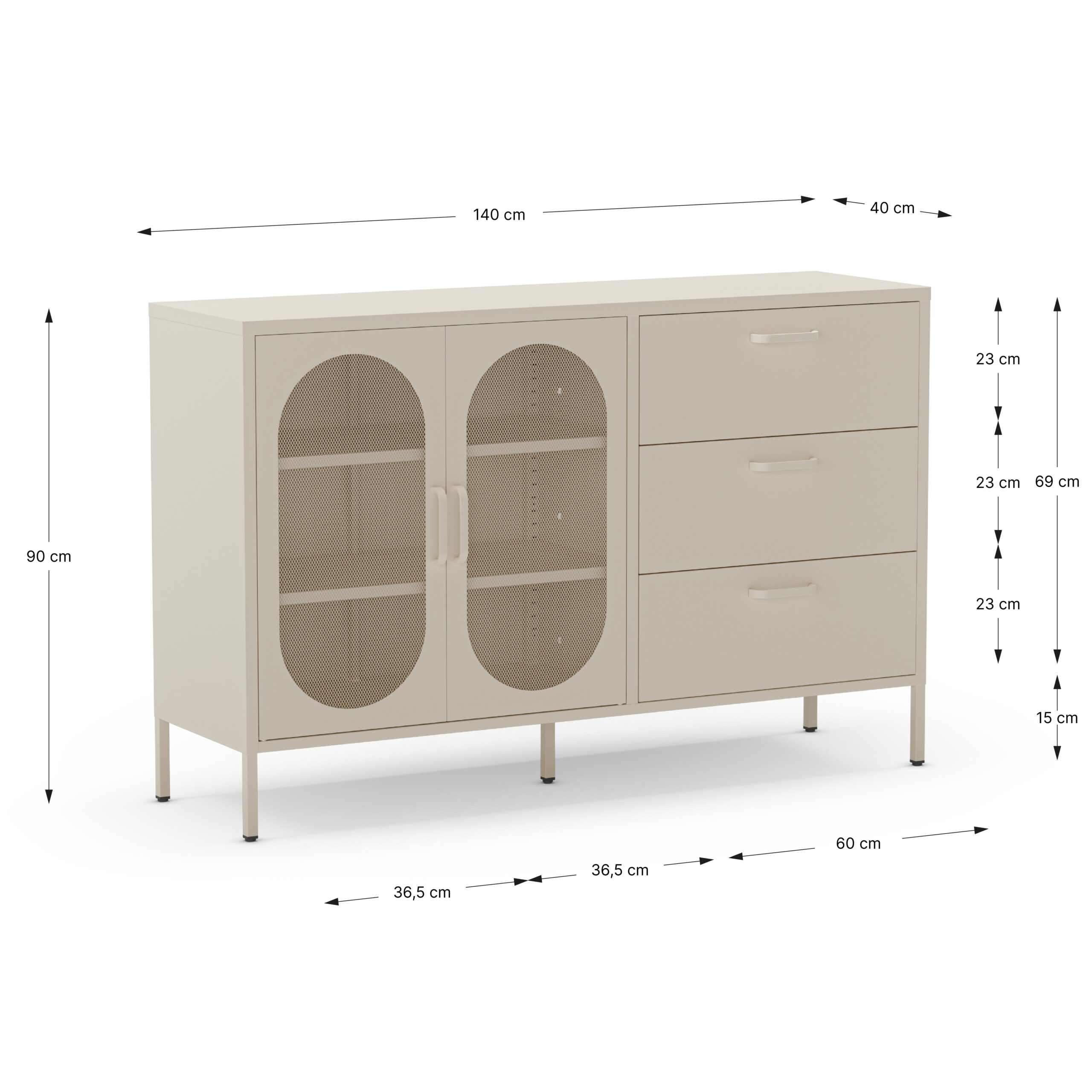 APARADOR DIORA 2P3C 140CM CREMA METAL