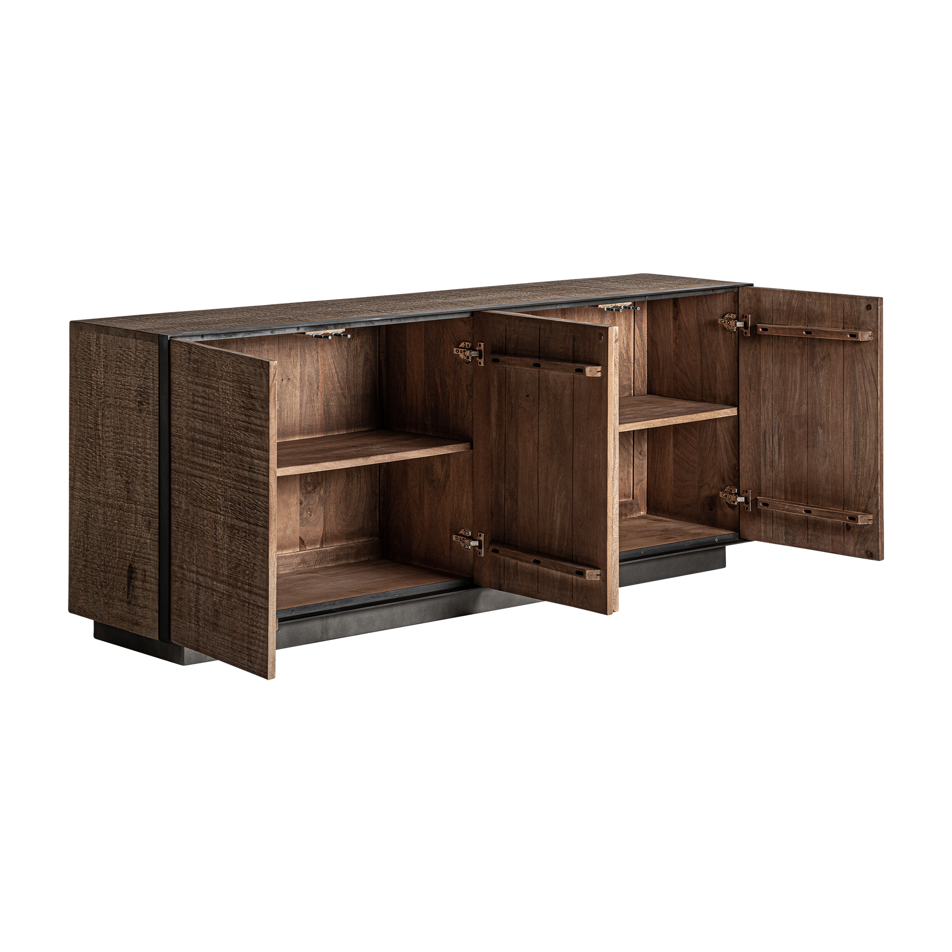Aparador krefeld de estilo art deco fabricado en madera de mango en color negro combinado con hierro en color marrón.