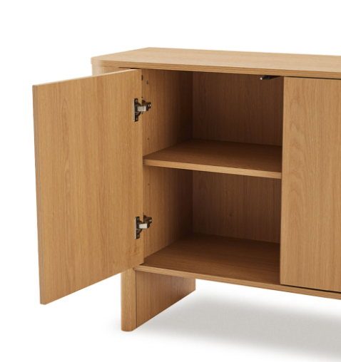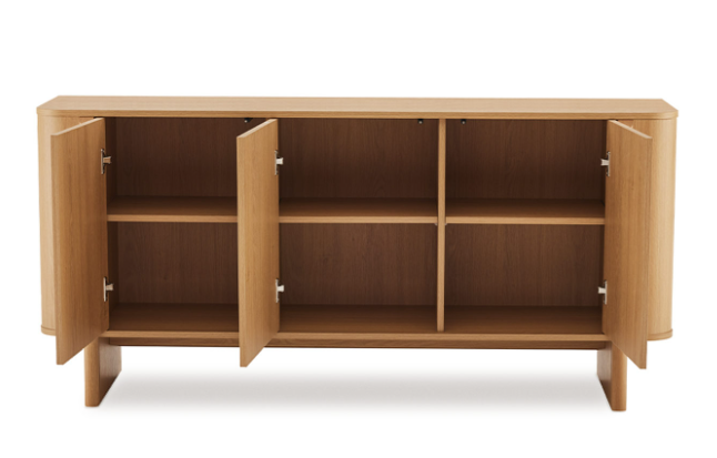 Con 160 cm de ancho, ofrece una amplia capacidad de almacenaje, siendo una solución funcional y estilosa para salones o comedores de estilo moderno, nórdico o contemporáneo.