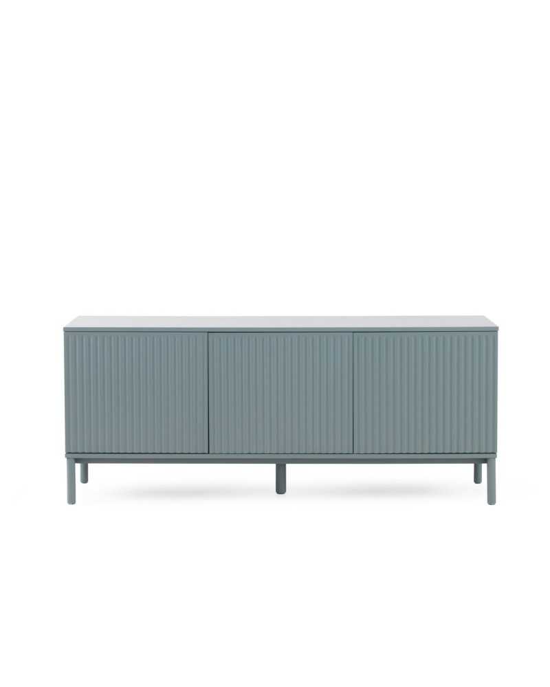 APARADOR MDF COLOR AZUL PALOMA, RANURAS ACANALADAS EN PUERTAS Y