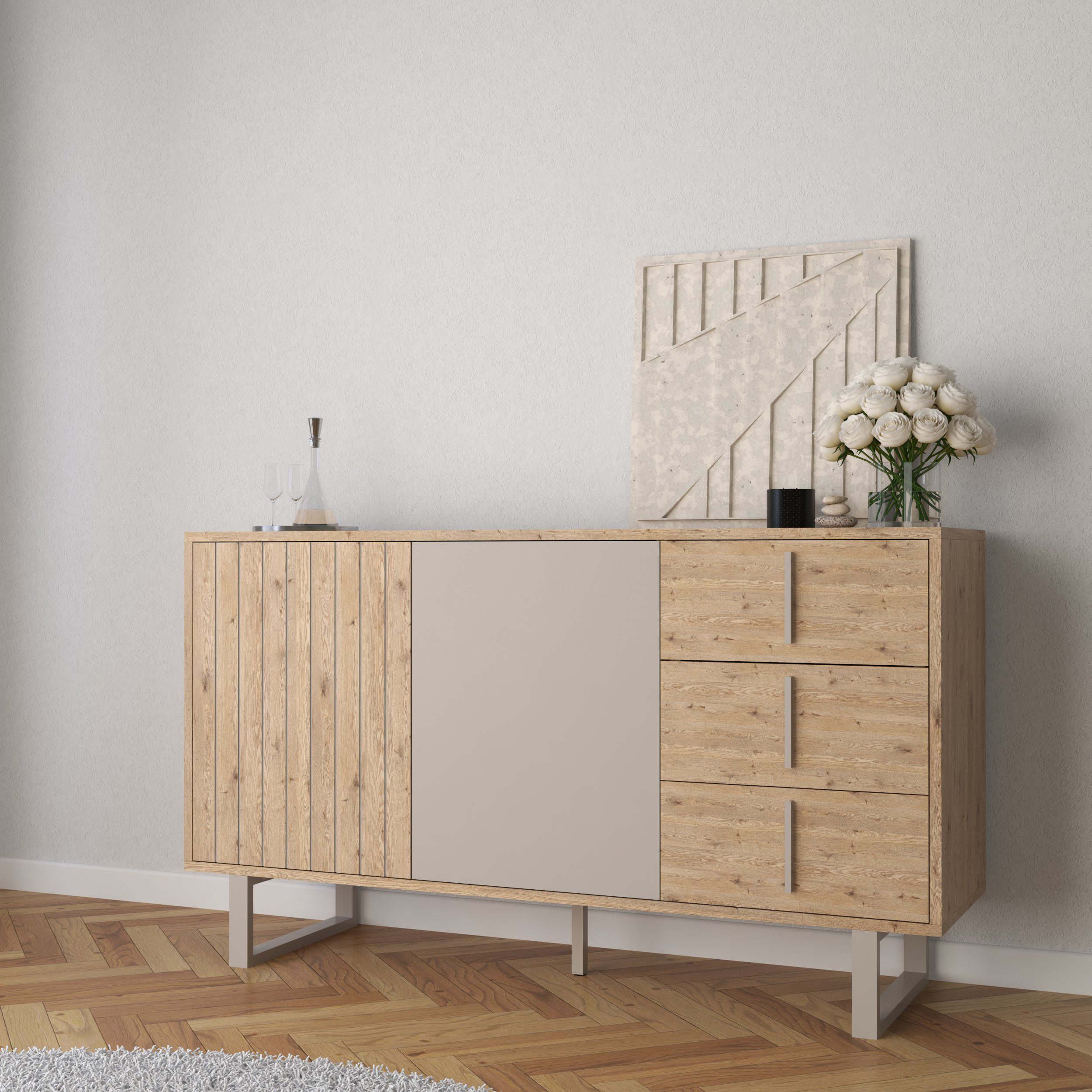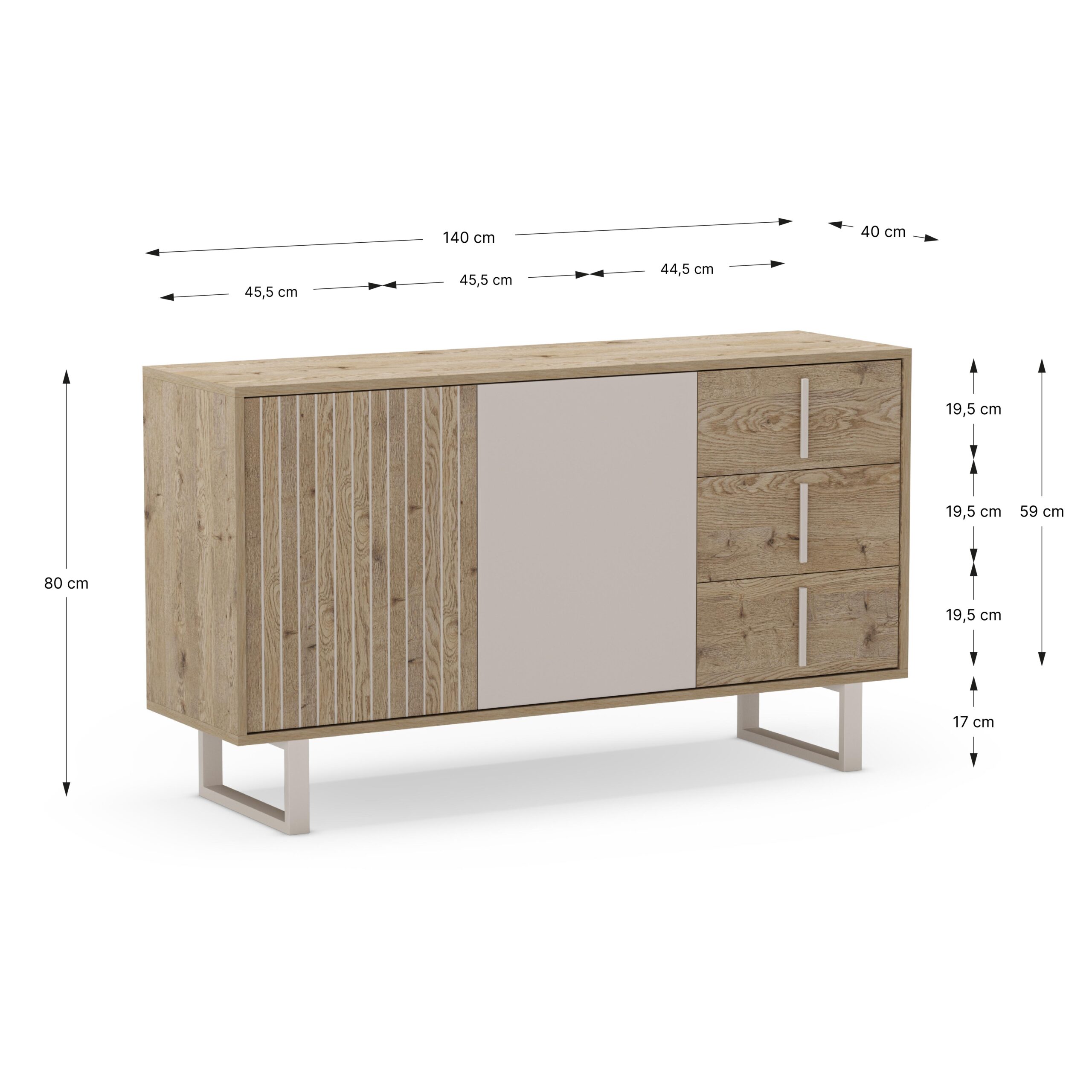 APARADOR MILLAY 2P3C ROBLE-K/GRIS MELAMINA/METAL