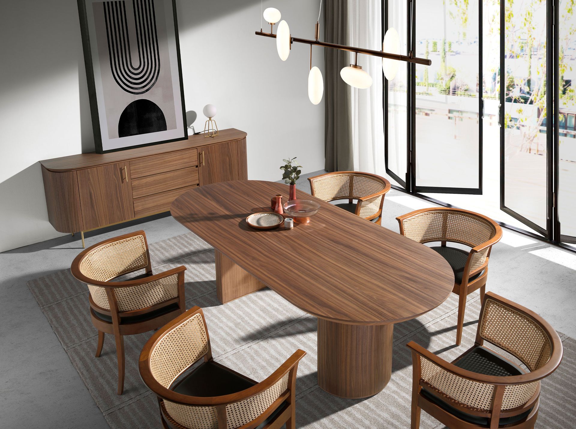Aparador nogal y acero pulido dorado modelo 3228 Angel Cerdá S.L.Aparador de diseño moderno con estructura de madera chapada en nogal natural y unas originales patas de acero inoxidable pulido en color dorado. Cuenta con un amplio espacio de almacenaje con 3 cajones con sistema de apertura uñero y cierre soft-closing, y 2 puertas con sistema de apertura tirador de lengüeta y cierre soft-closing. Medidas del producto: 210 x 45 x 80 cm.- Este elegante aparador de madera chapada en nogal natural de 0,5 mm de espesor, aportará el toque diferente y moderno que busca para su hogar. – El acero de sus patas, así como su diseño lineal, permite que encaje en cualquier espacio de su hogar. – Versátil y funcional, su diseño permite que encaje en cualquier ambiente, convirtiéndose en un elemento clave de la decoración de su hogar. – Gracias a su balda de madera, podrá disfrutar de un amplio espacio para guardar su vajilla o menaje de mesa. – Práctico y funcional, gracias a su espacio de almacenaje podrá mantener todo en su sitio, eliminando ruido visual en su salón o comedor.