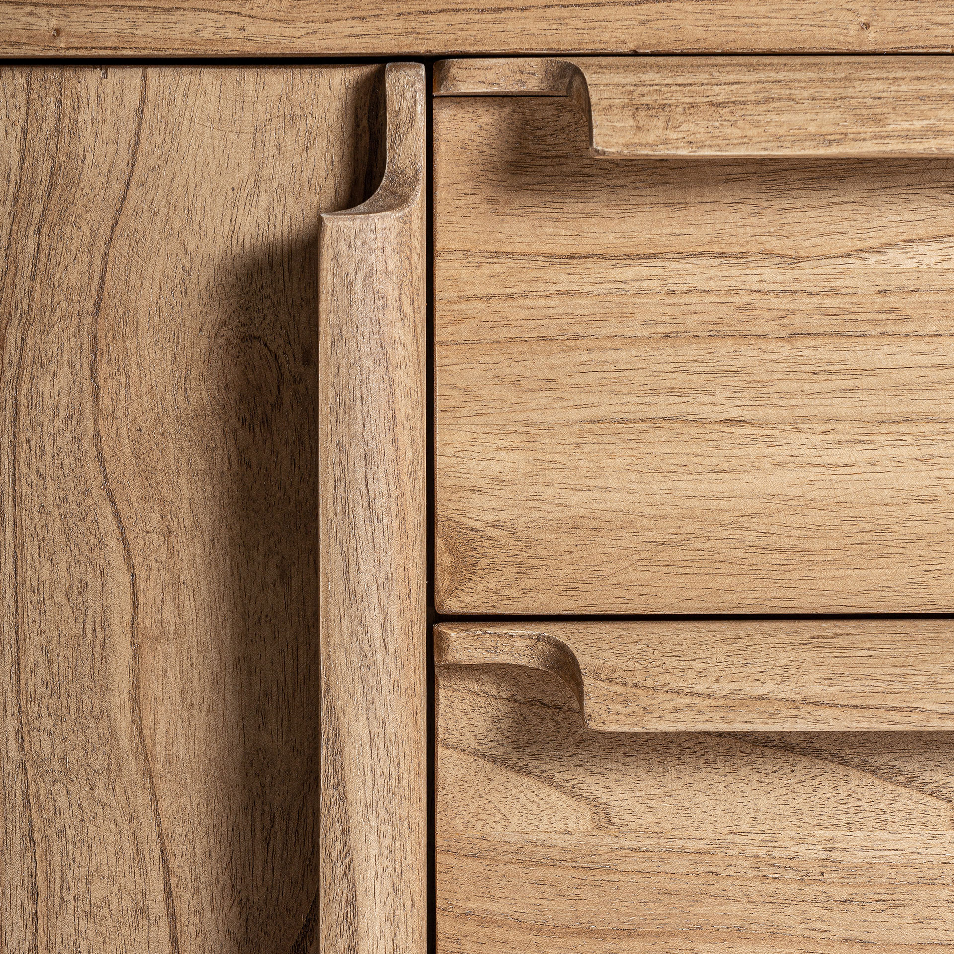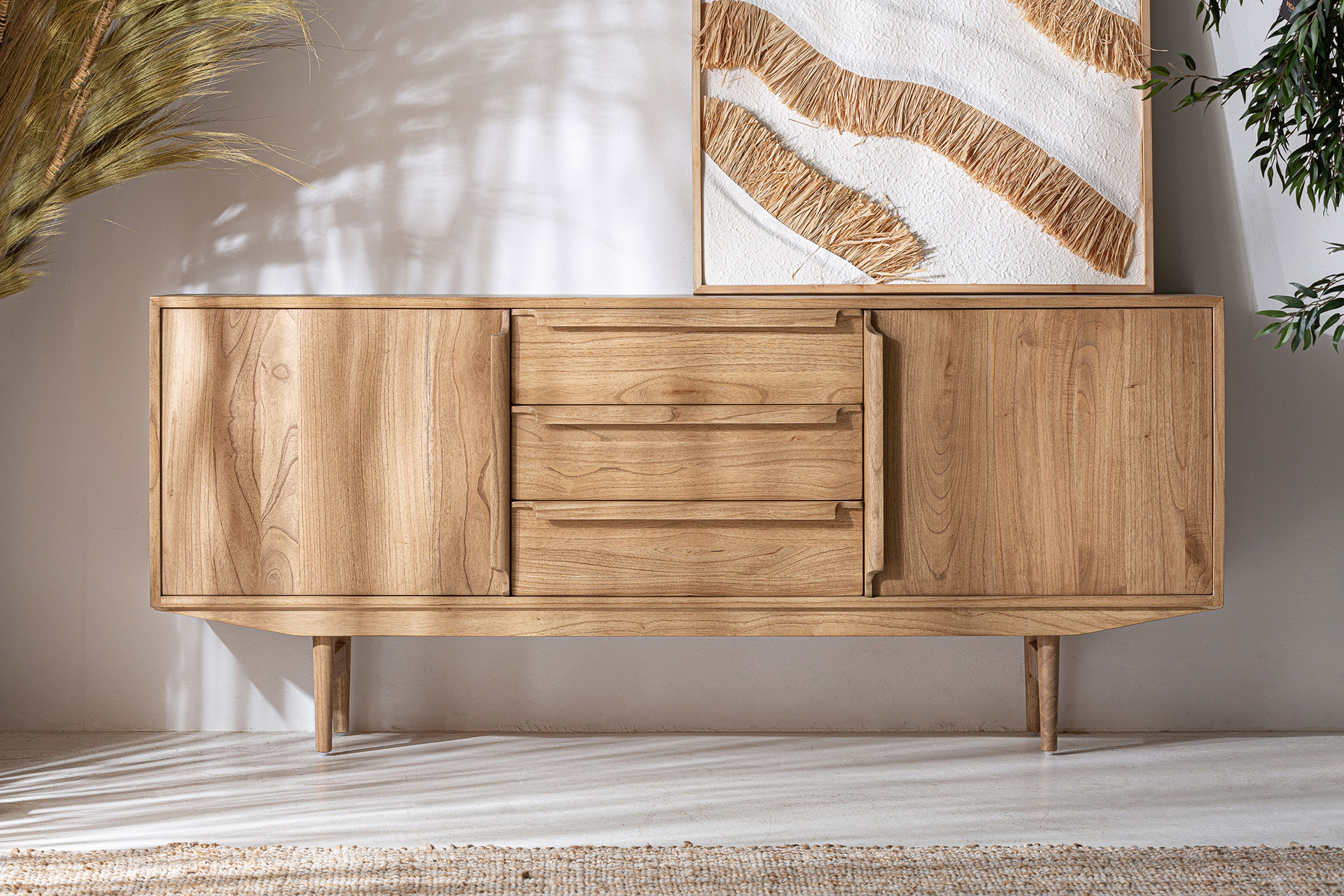 Aparador rectangular nyry de estilo nórdico, fabricado en madera mindi en color marrón. Producto desmontable.