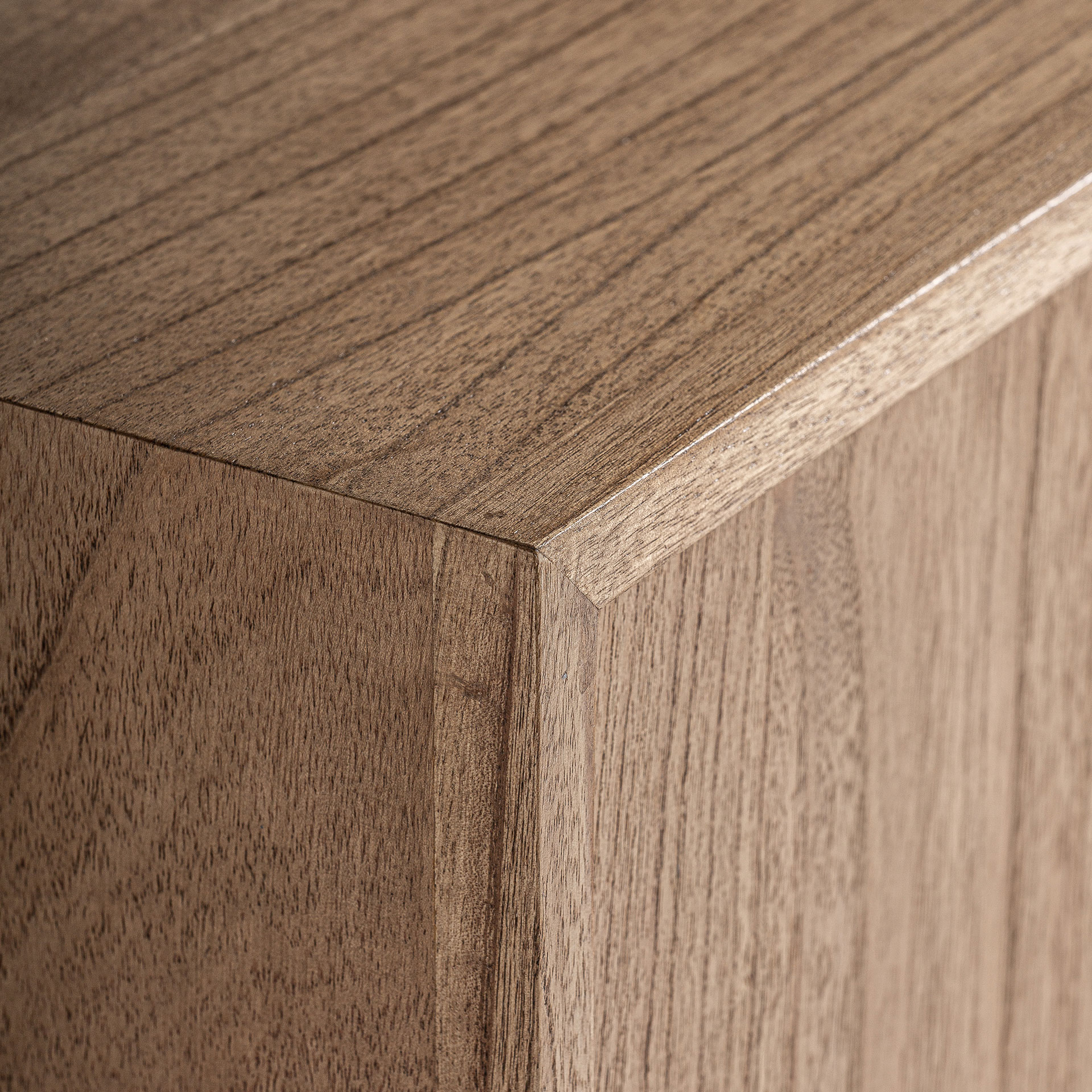 Aparador rectangular nyry de estilo nórdico, fabricado en madera mindi en color marrón. Producto desmontable.