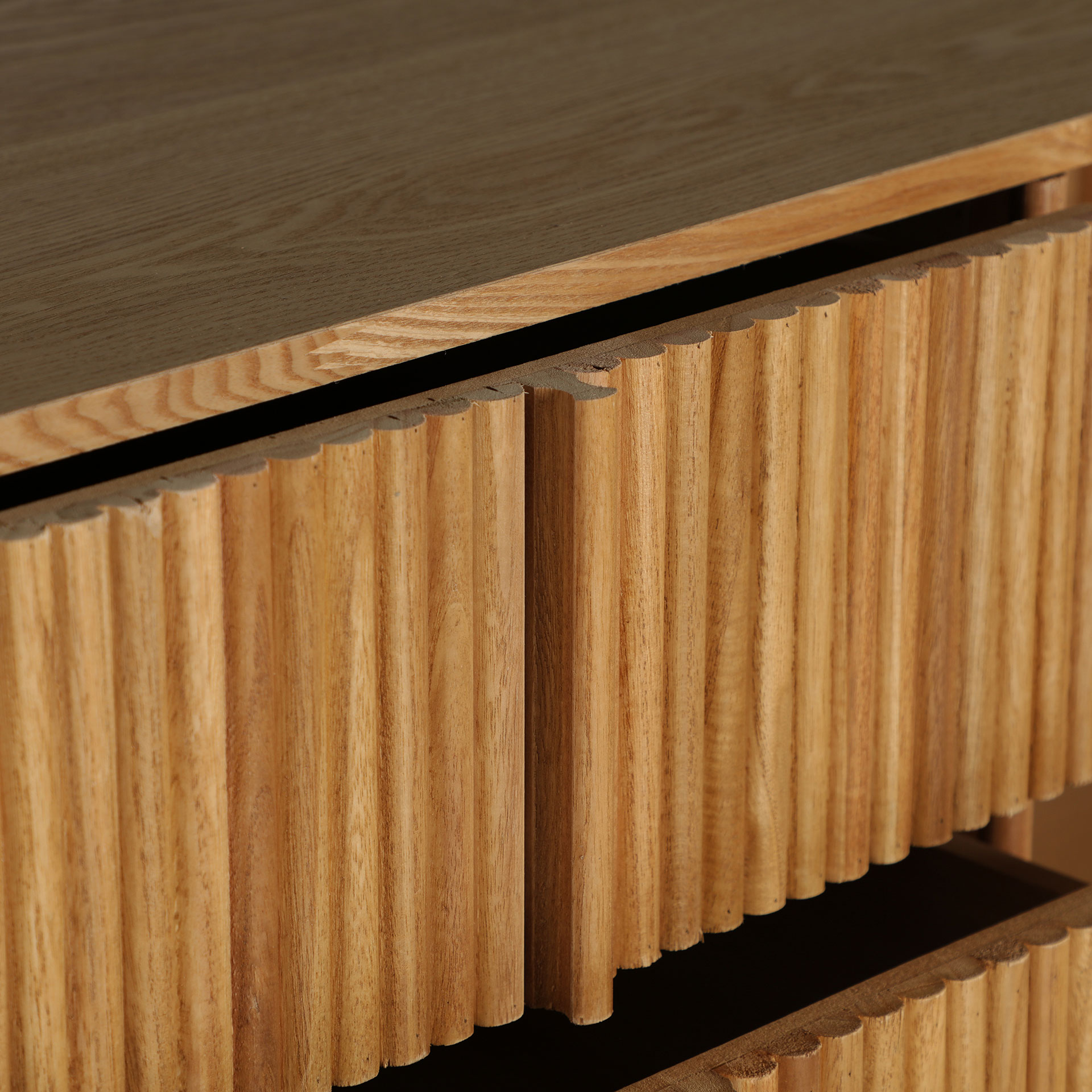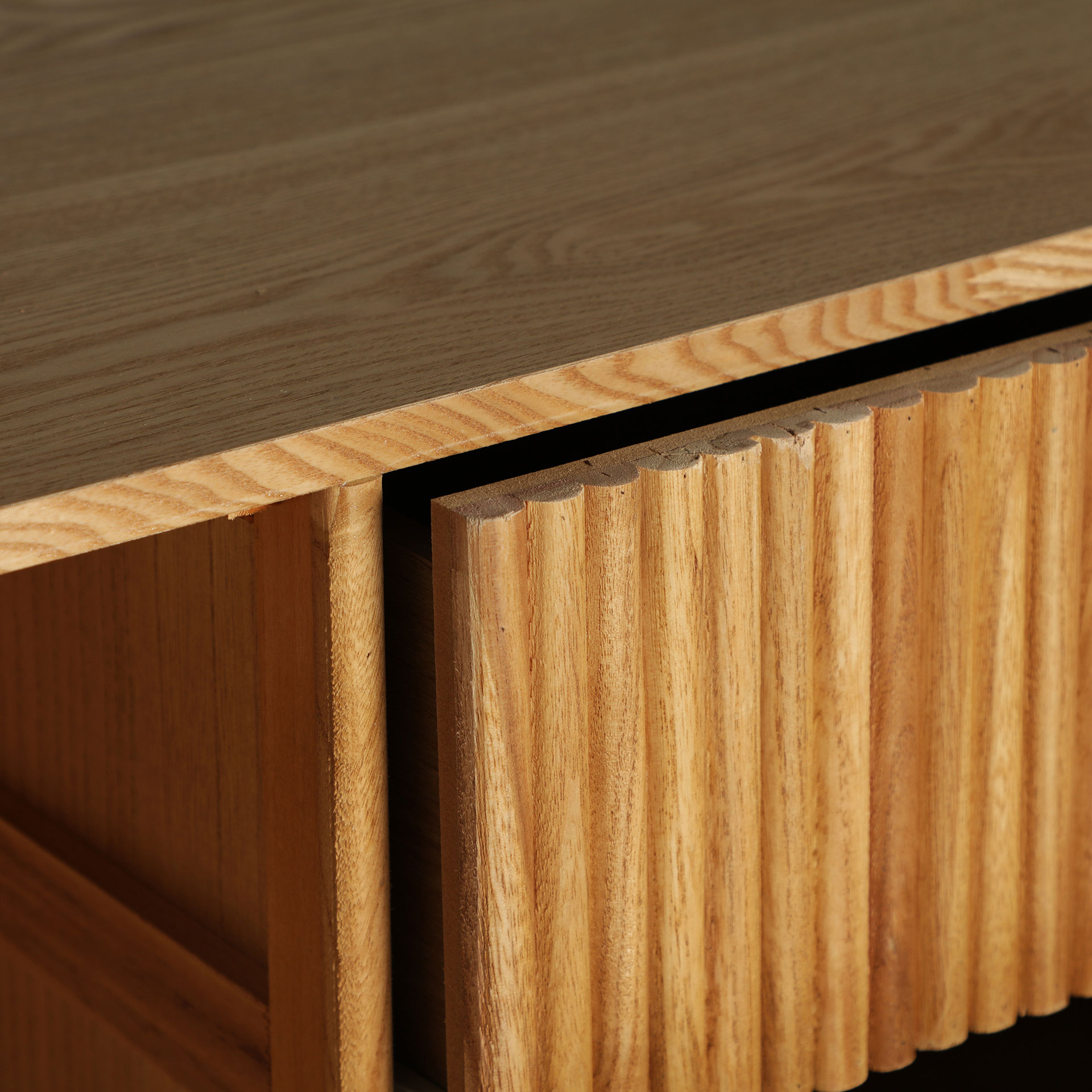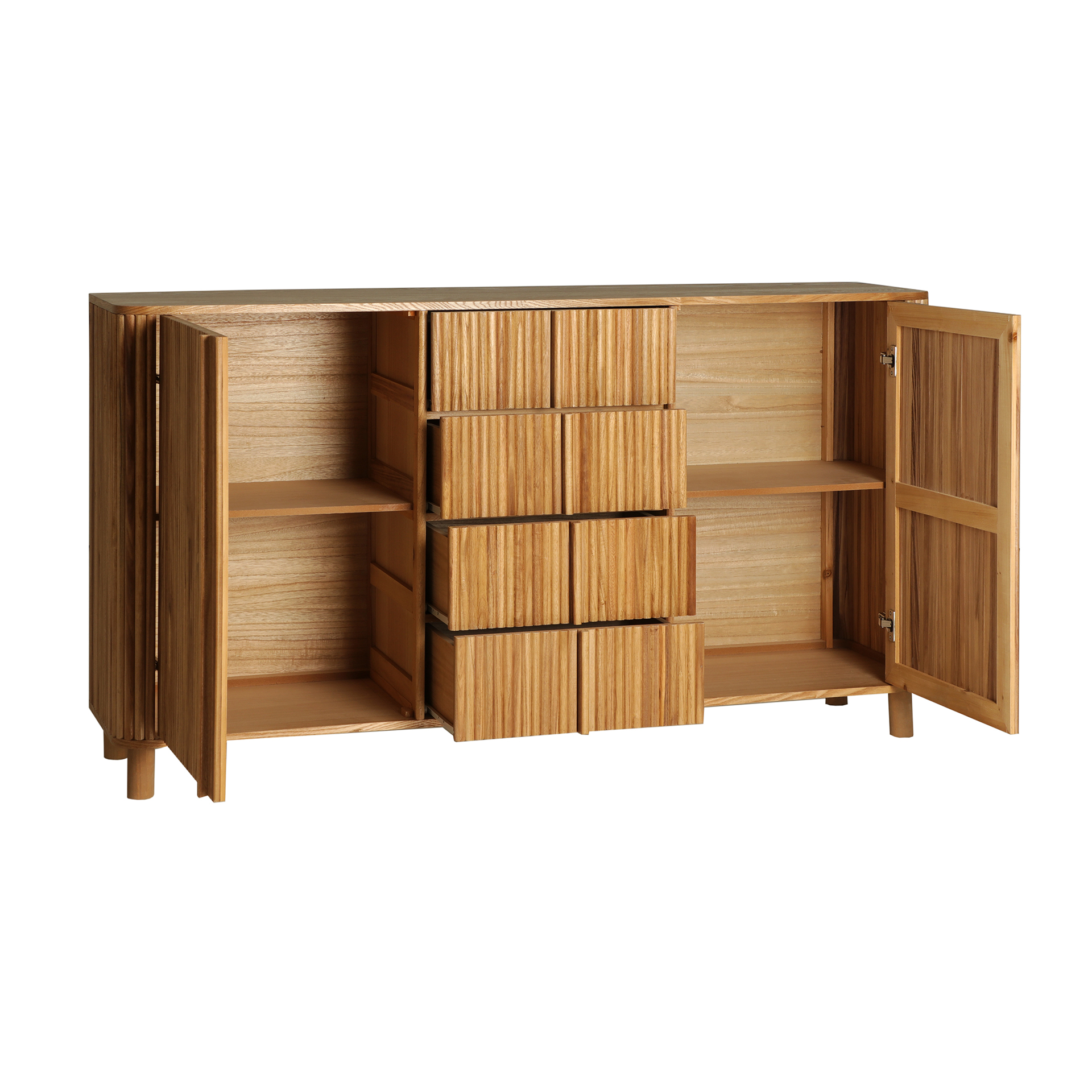 Aparador rectangular skagen de estilo nórdico, fabricado en madera dm en color marrón claro, combinado con madera de paulownia.