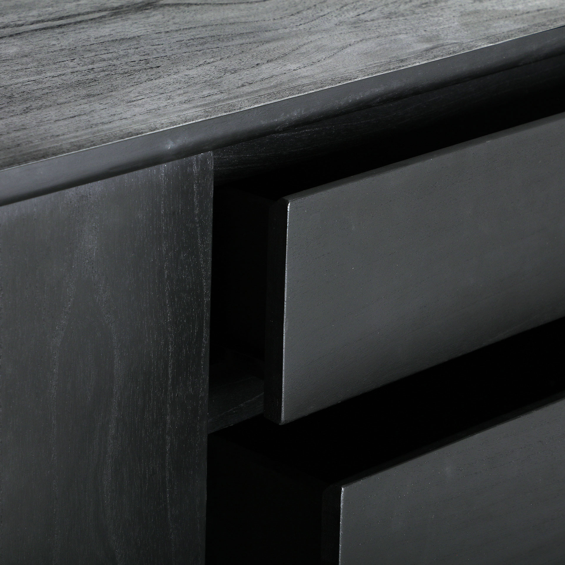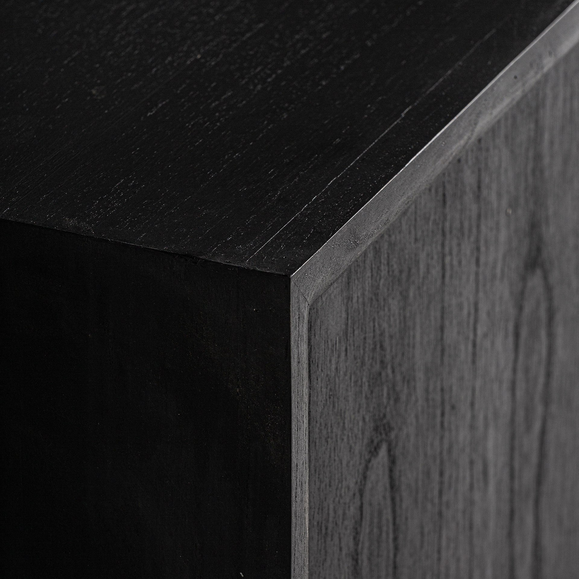 Aparador thiers de estilo nórdico, fabricado en madera mindi en color negro, combinado con madera contrachapada en color marrón. Producto desmontable.