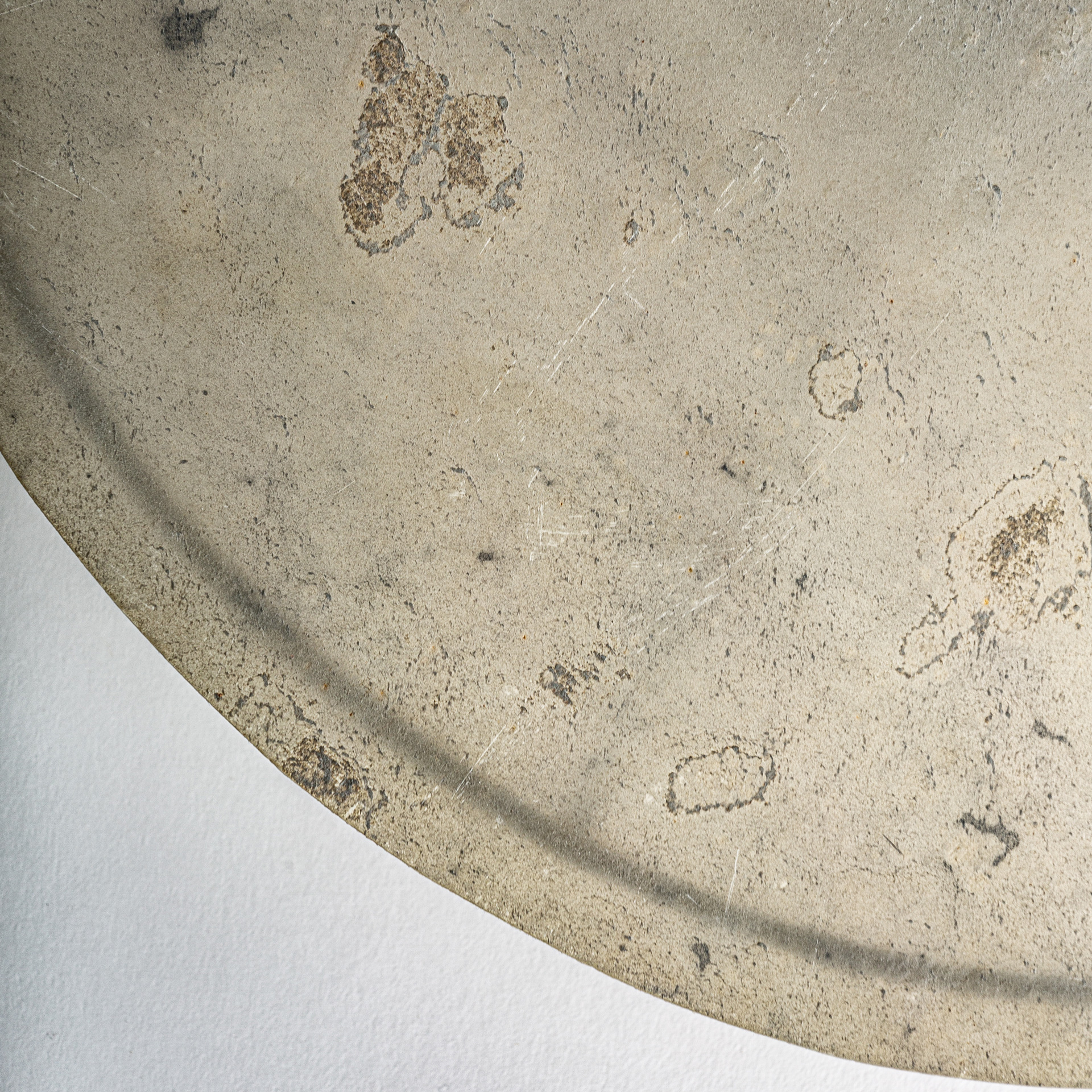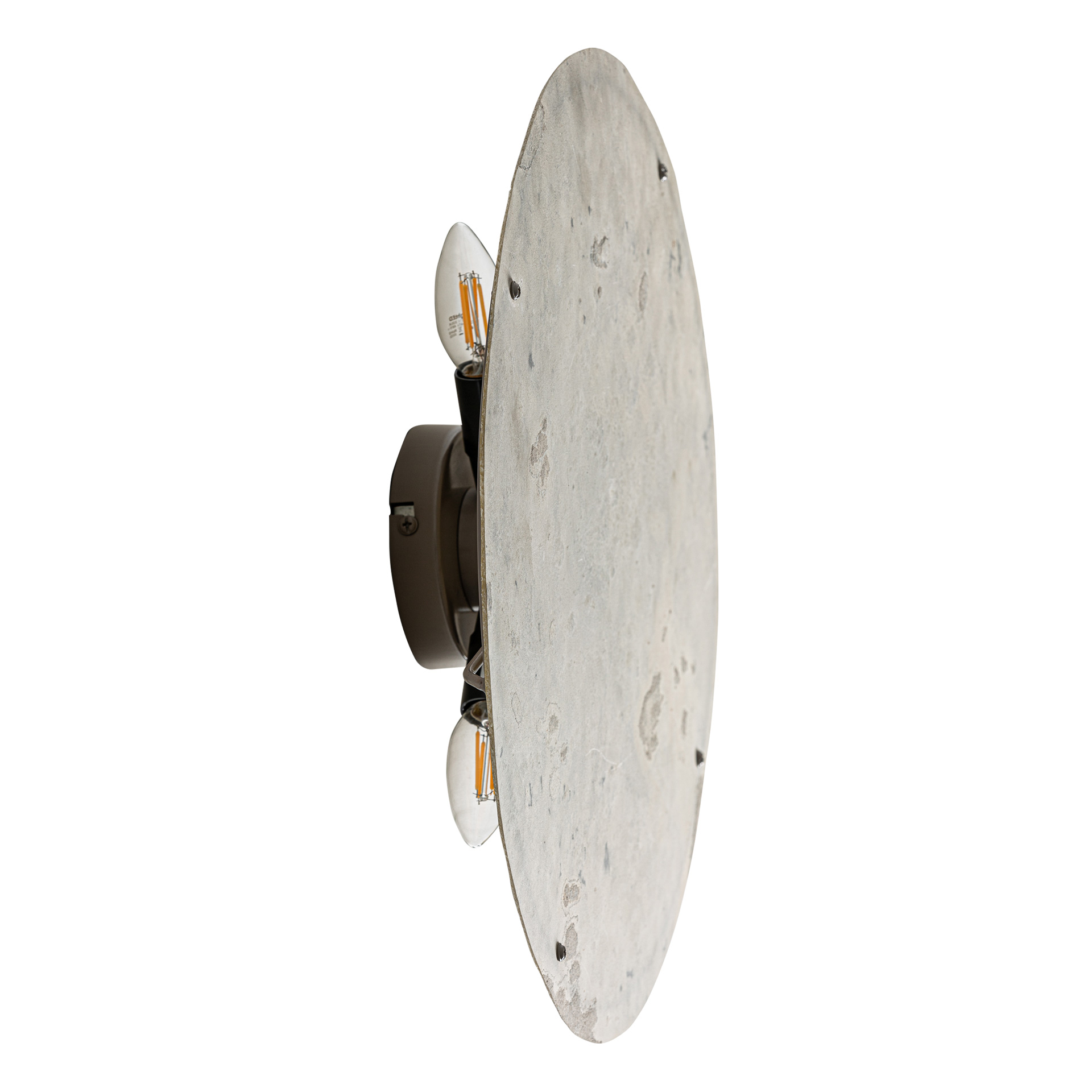 Aplique Moon de estilo contemporáneo fabricado en piedra en color tonos neutros combinado con hierro en color negro.