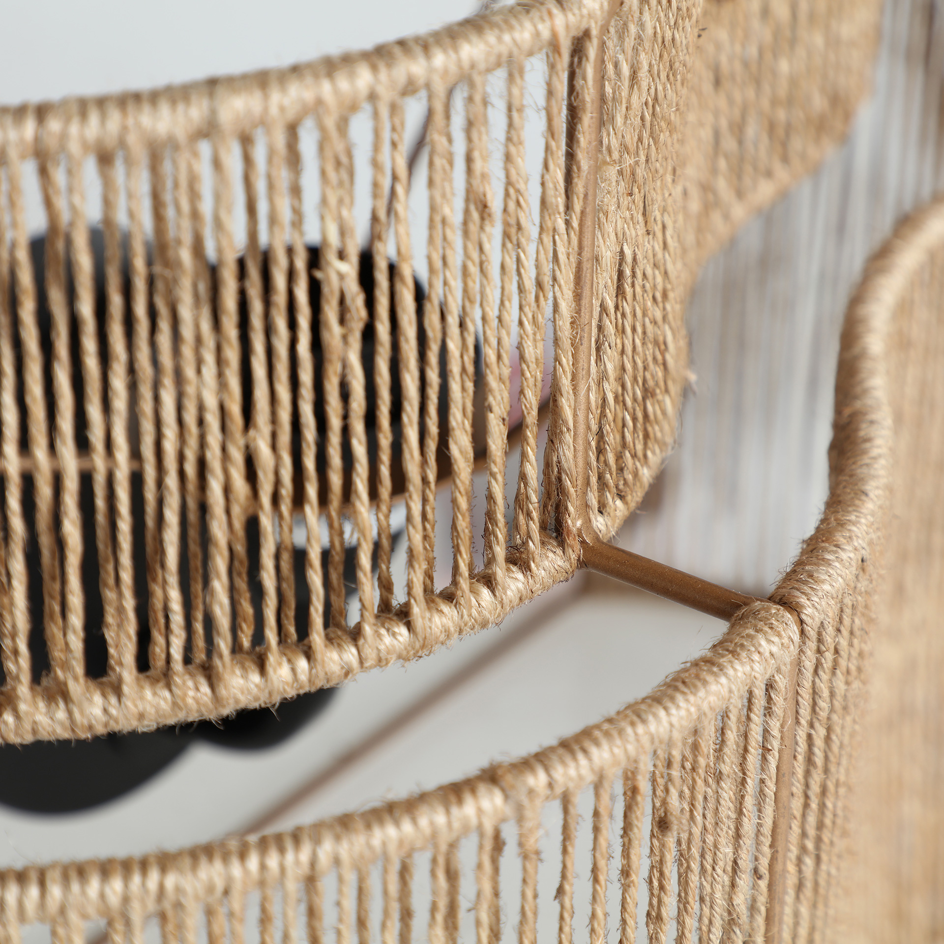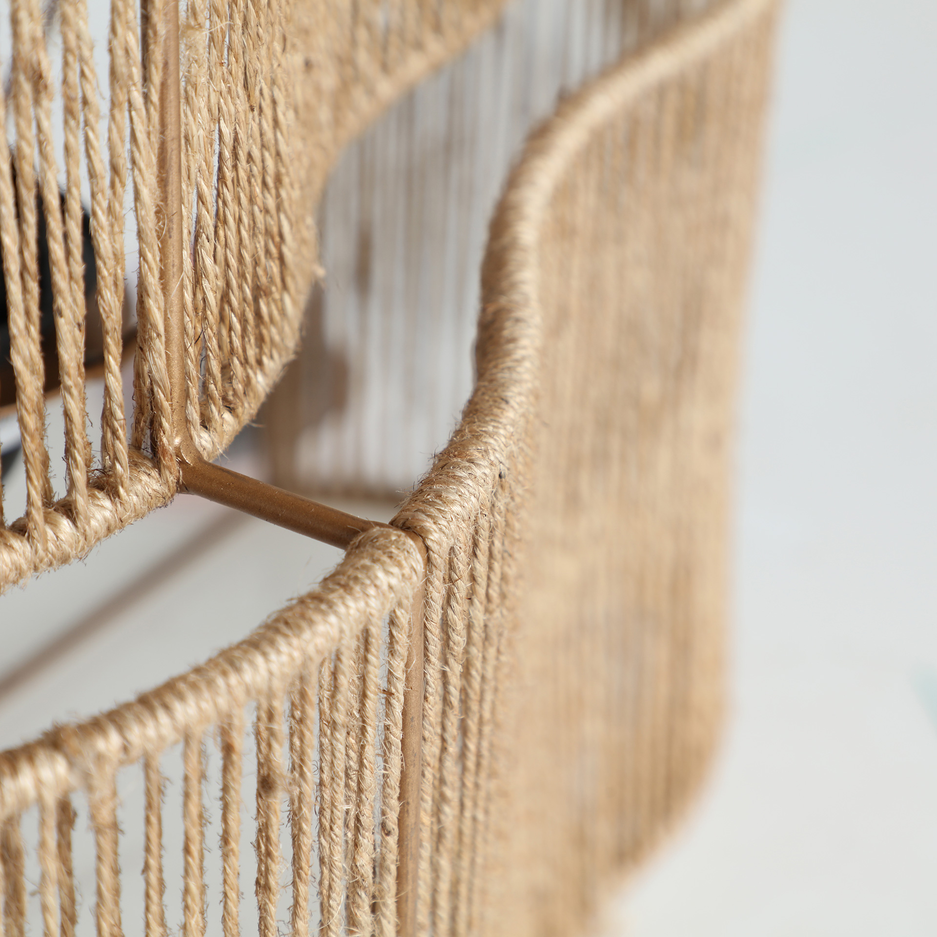 Aplique Yaxunah de estilo boho, fabricado en yute en color marrón claro, combinado con hierro en color marrón claro.