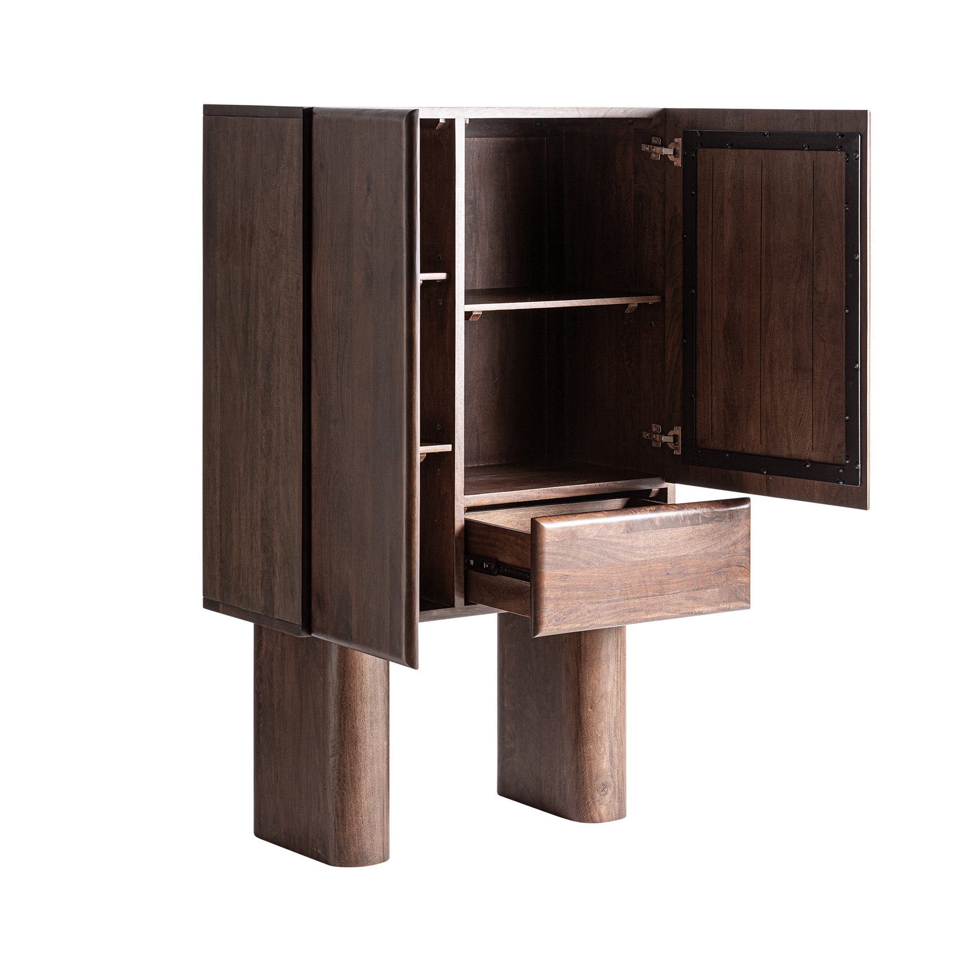 Armario craigh de estilo contemporáneo fabricado en madera de mango en color marrón combinado con acero. Producto desmontable.