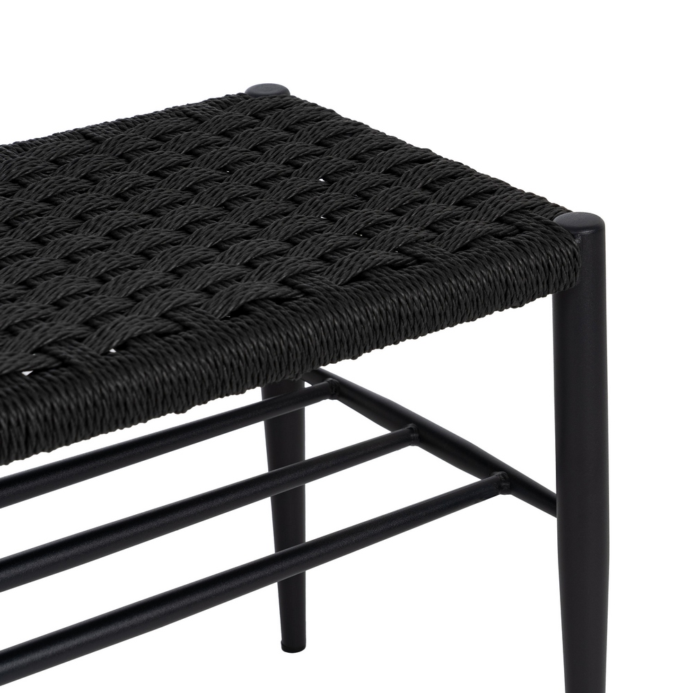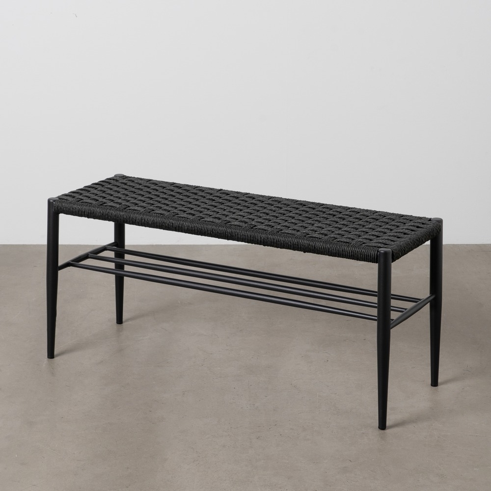 BANCO NEGRO CUERDA-METAL 100 X 35 X 46 CM Material: cuerda de papel – metal (acero) Altura asiento: 46cm.