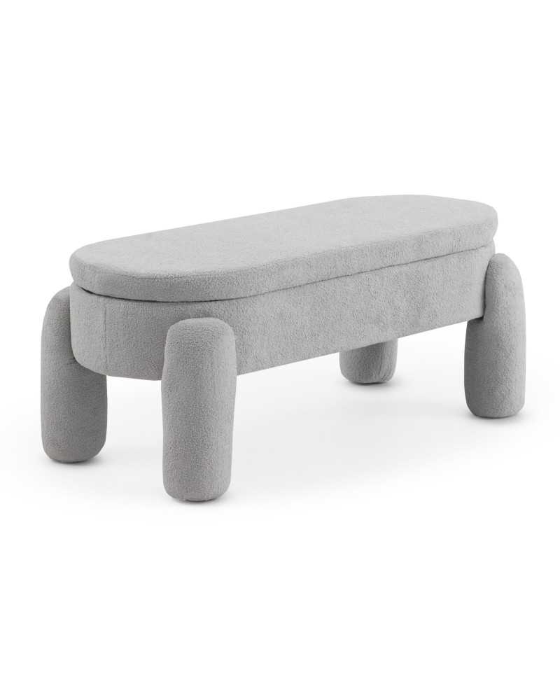 BANQUETA-BAUL ESTRUCTURA Y PATAS TAPIZADAS EN BOUCLE GRIS CLARO GRIS CLARO