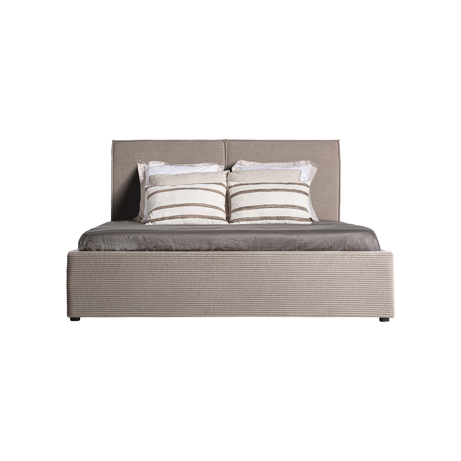 Cama Natasha de estilo contemporáneo, fabricado en poliéster en color beige, combinado con madera de pino. Producto desmontable.
