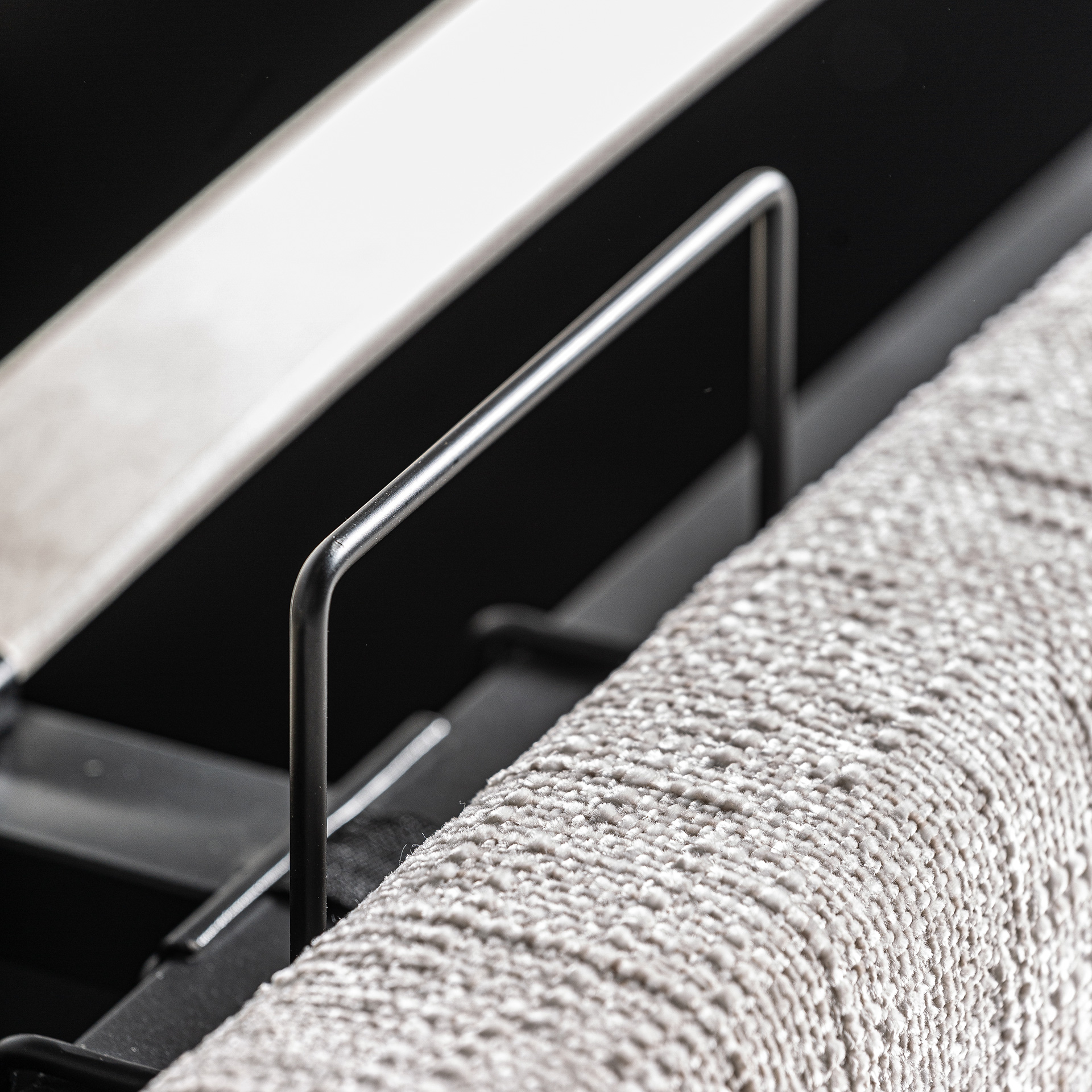 Cama Verna de estilo contemporáneo, fabricado en poliéster en color gris con acabado jaspeado, combinado con madera de pino en color marrón. Producto desmontable.
