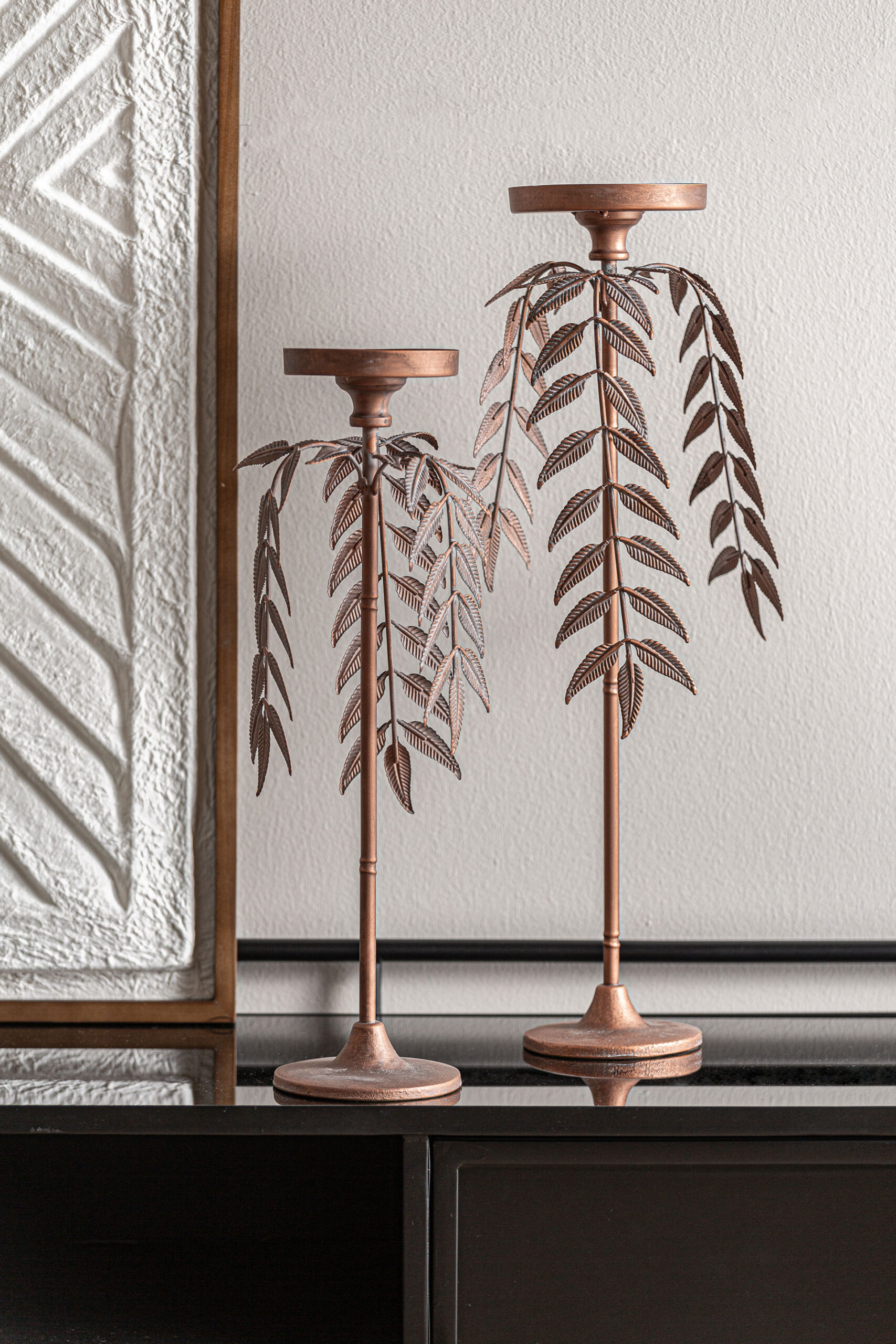 Candelabro redondo palmera lucerna de estilo art deco, fabricado en hierro en color cobre.