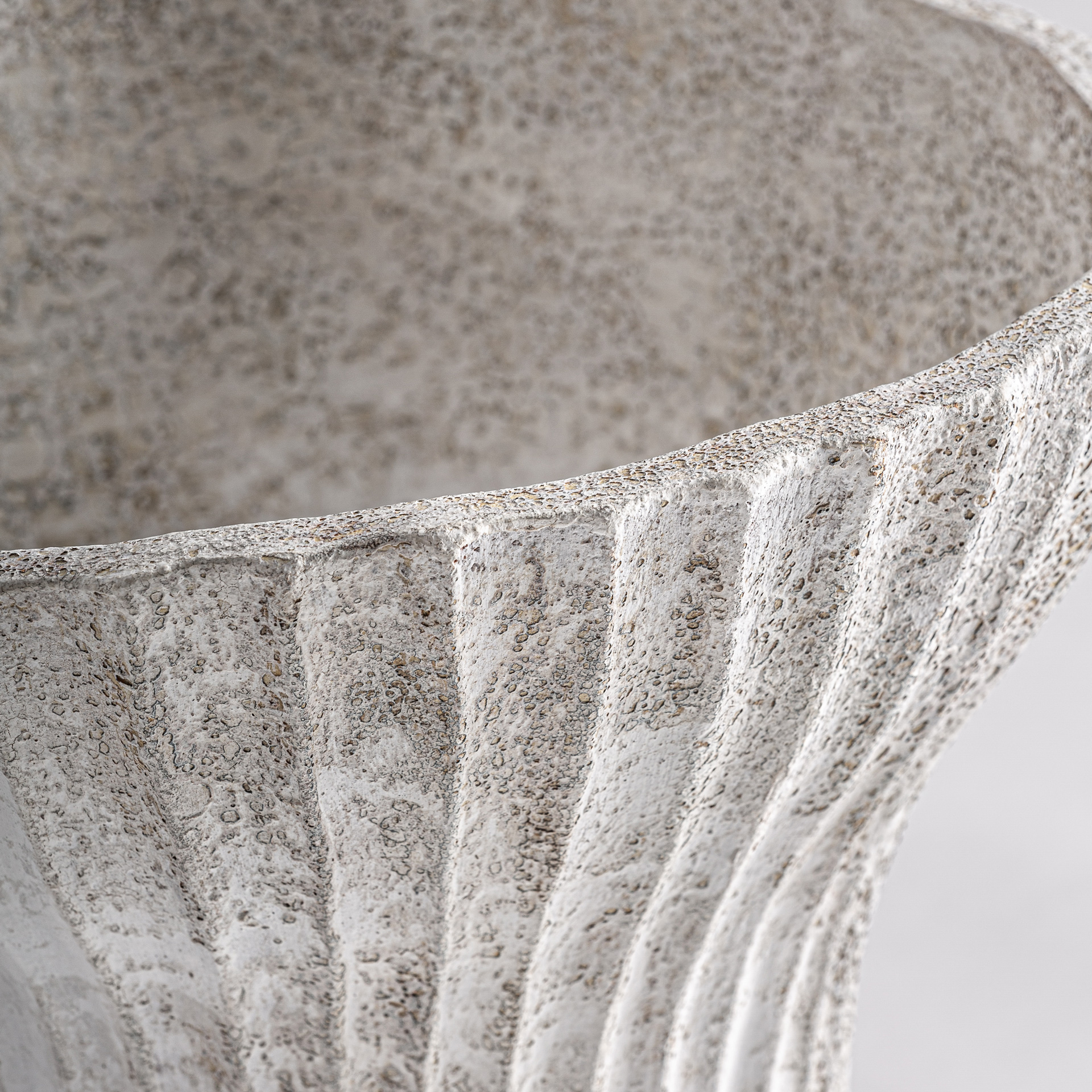 Centro de mesa Lumo de estilo contemporáneo fabricado en terracota en color blanco roto con acabado texturizado.