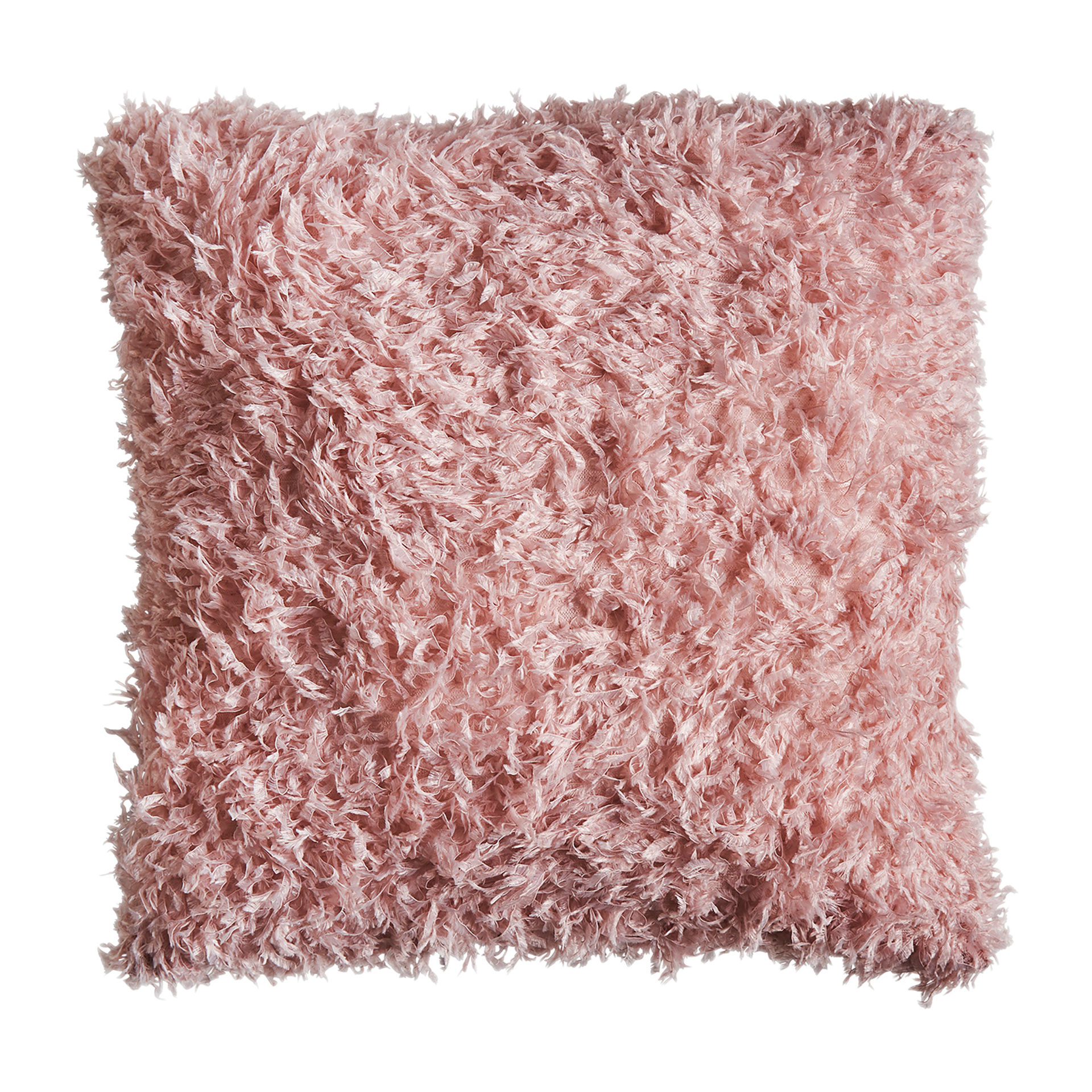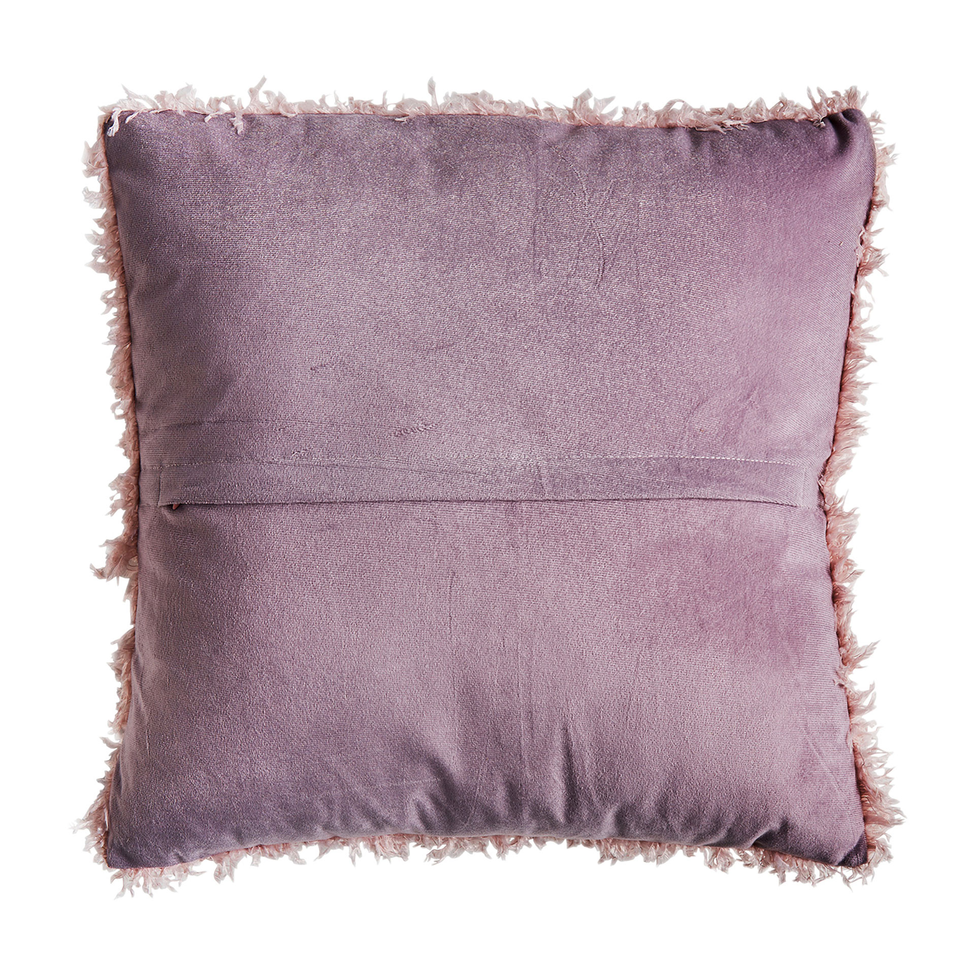 Cojín Asira de estilo provenzal, fabricado en poliéster en color rosa, combinado con fibra natural. Producto desenfundable.