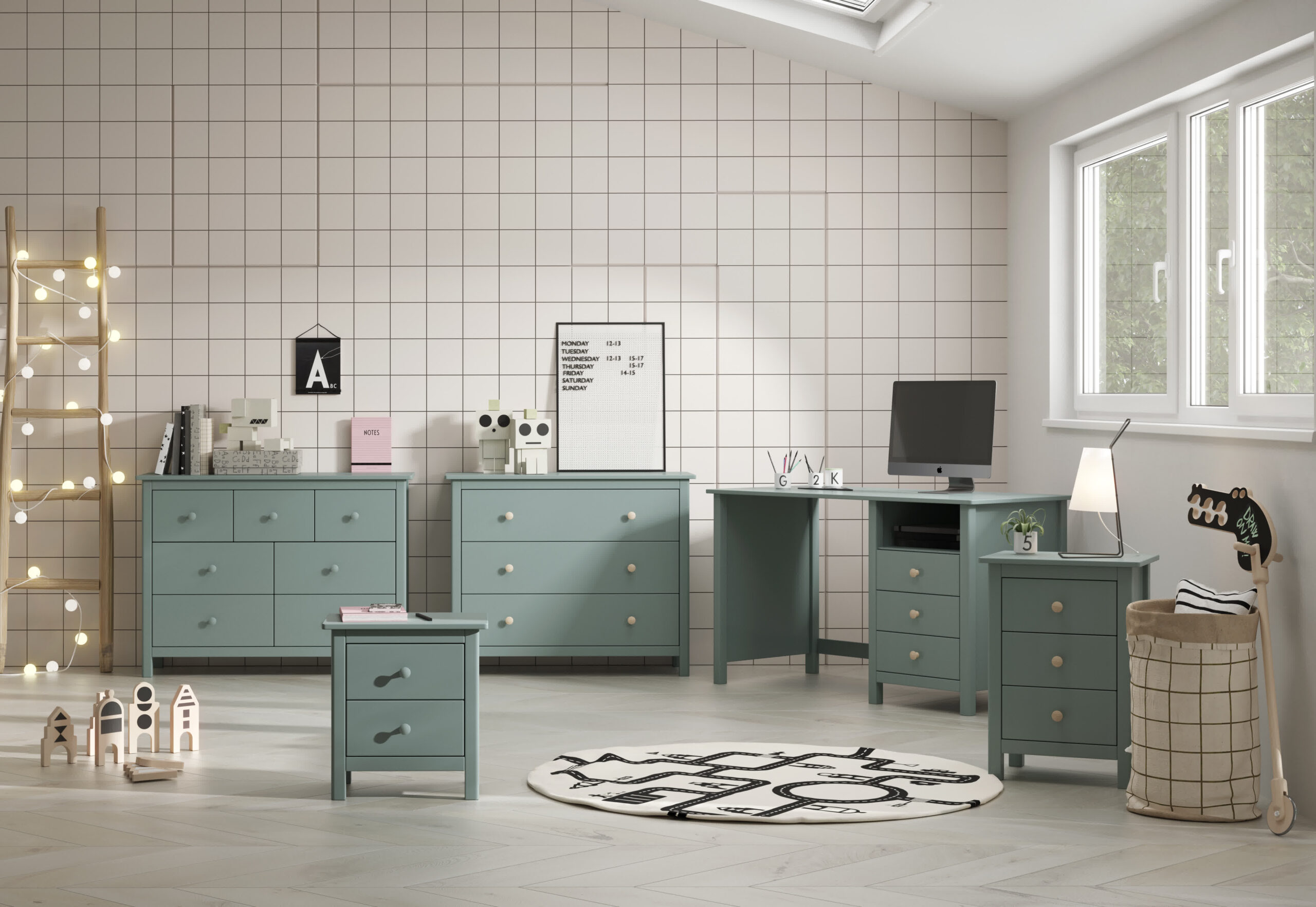 CÓMODA MAX 4+3C VERDE PETRÓLEO