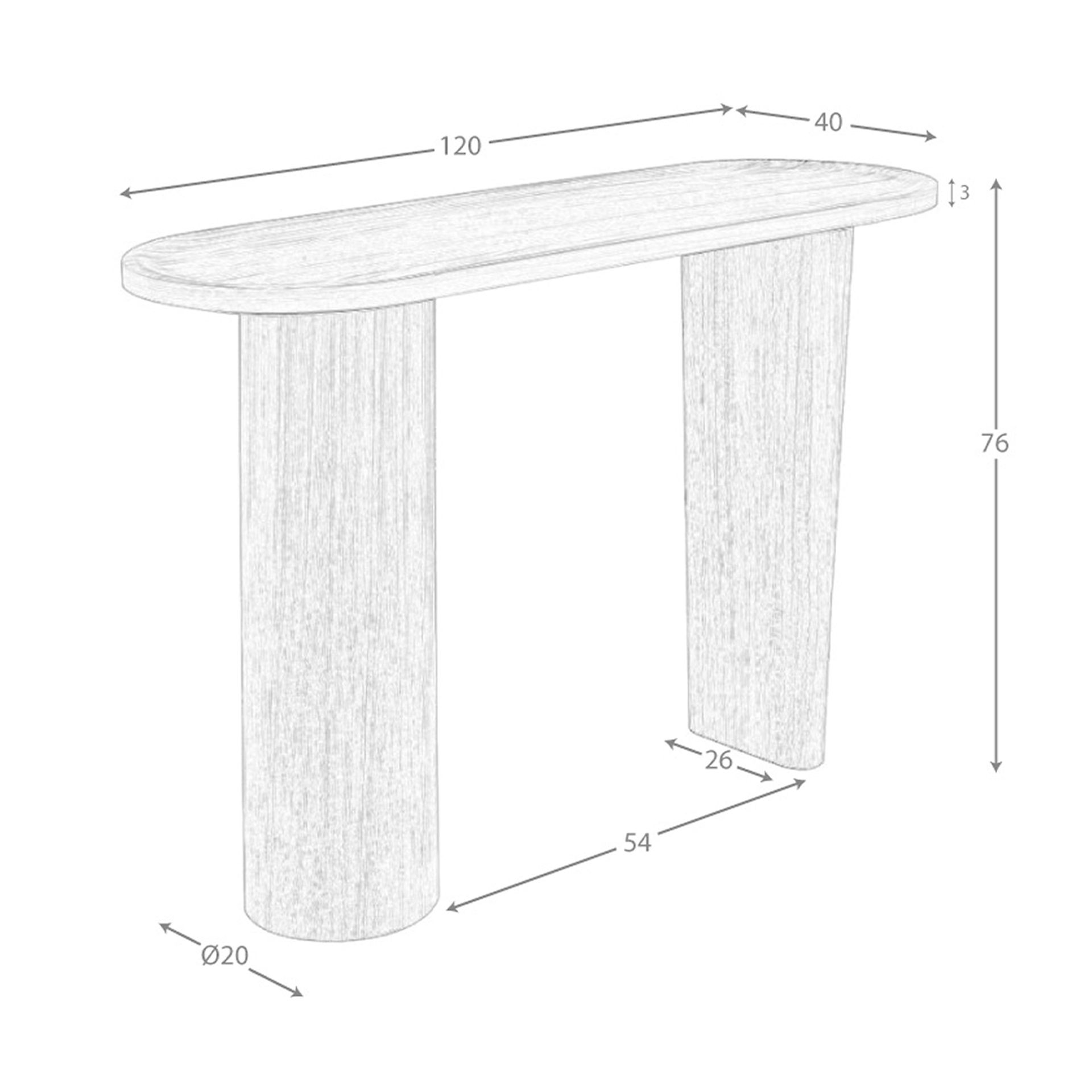 Consola ovalada medio punto nogal | – Material de la tapa: Madera chapada en nogal natural de 0,5 mm de espesor- Material de las patas: Madera chapada en nogal natural de 0,5 mm de espesor