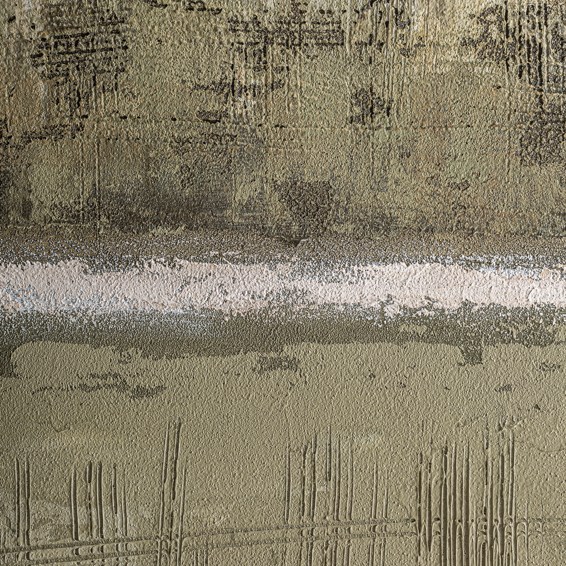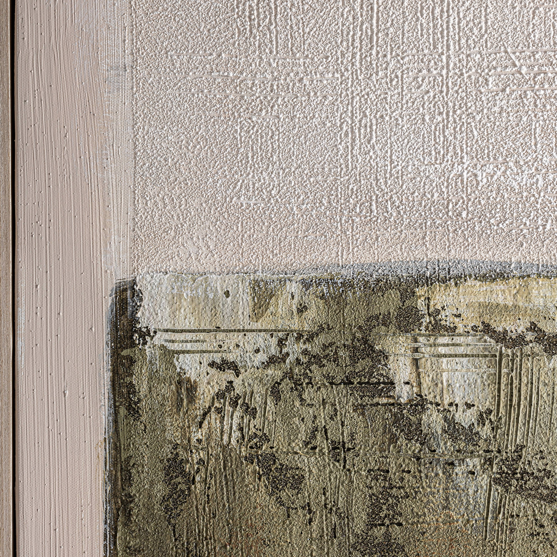 Cuadro Kain de estilo contemporáneo fabricado en lienzo en color tonos en verde con acabado artesanal combinado con madera de pino en color marrón claro.