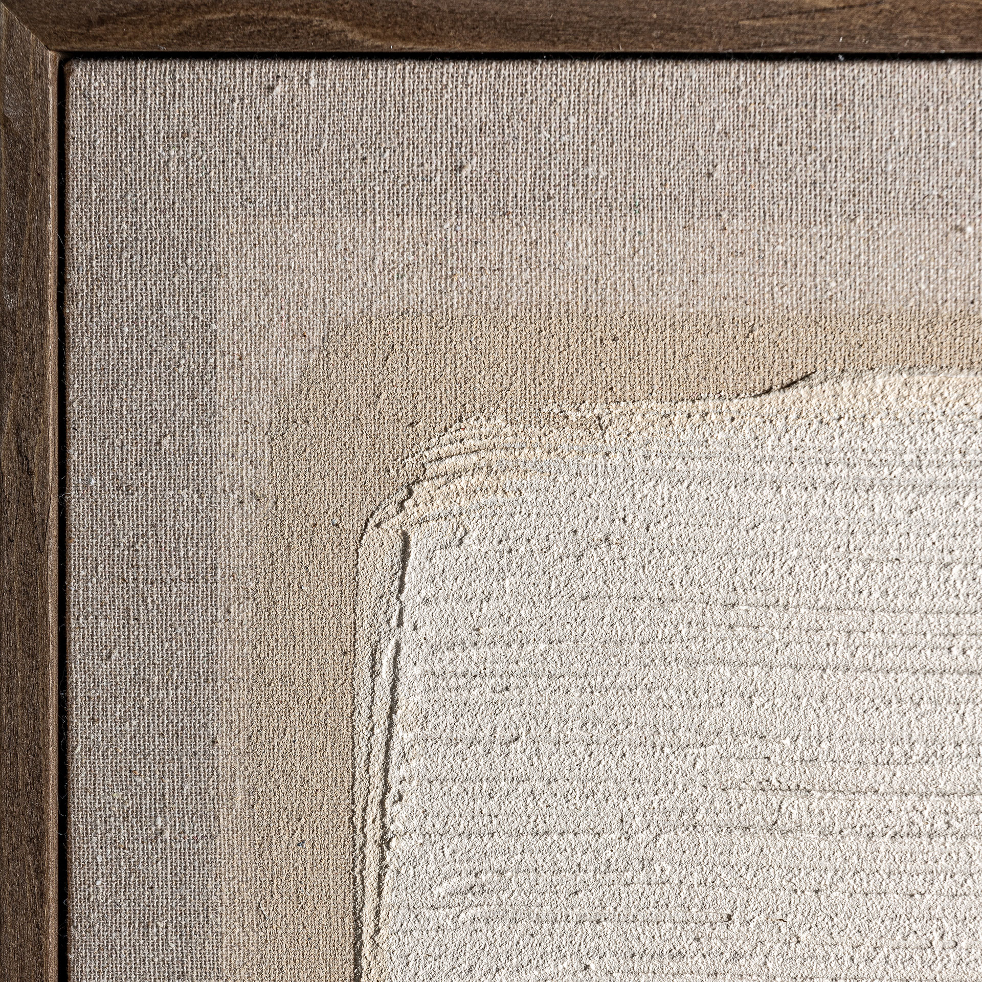 Cuadro Darcy de estilo contemporáneo fabricado en lienzo en color tonos claros con acabado artesanal combinado con madera de pino en color marrón.
