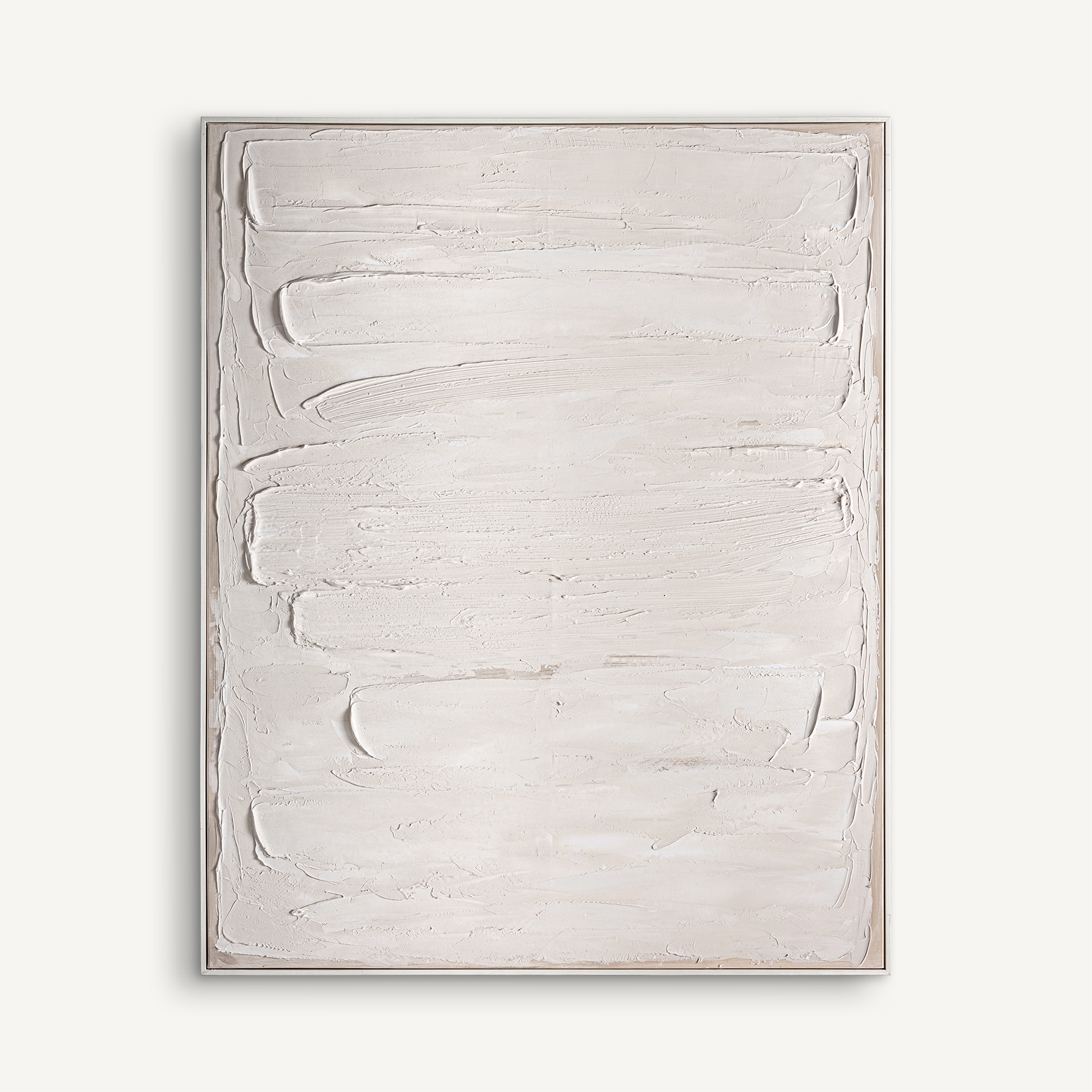 El cuadro Egil, en blanco roto y acabado artesanal, presenta una estética contemporánea de gran serenidad. Una pieza de VICAL con presencia y equilibrio.