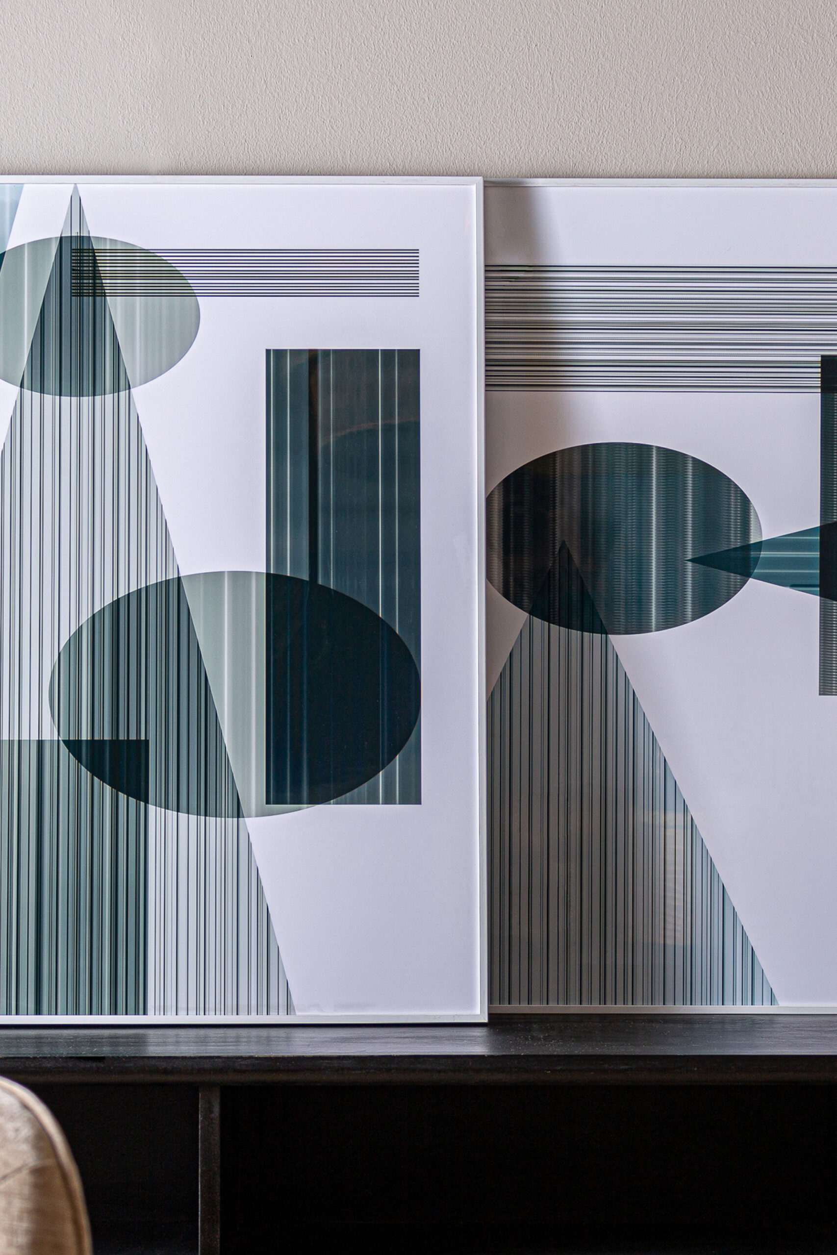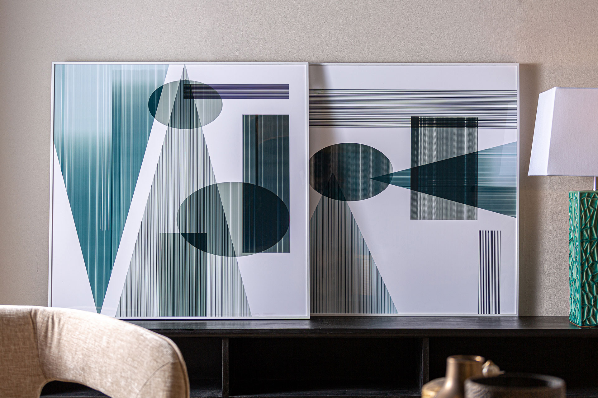 Cuadro j/2 Melka de estilo contemporáneo, fabricado en madera dm en color blanco con acabado impreso, combinado con metacrilato en color multicolor.
