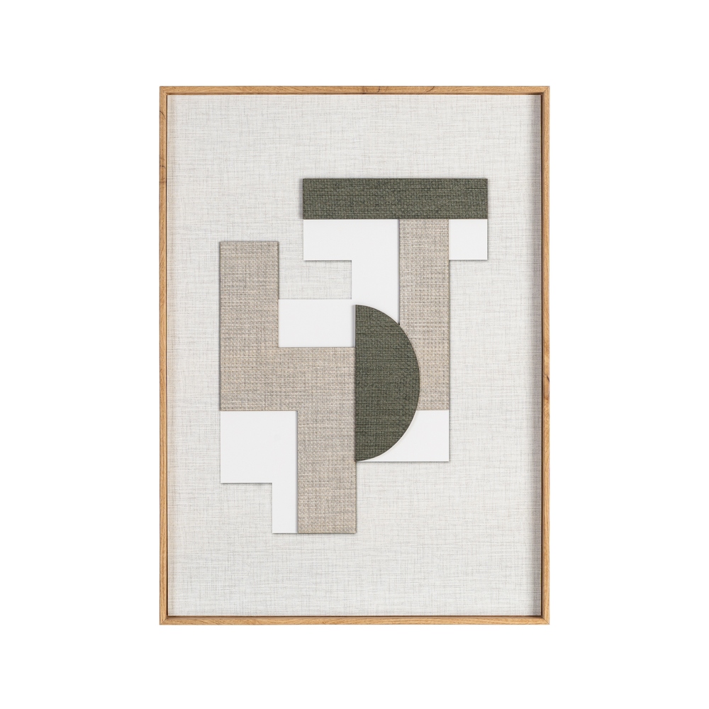 CUADRO MIX TALLADO&PRINT 2/M VERDE 52 X 3,50 X 72 CM MDF IMPRESO CON VARIAS PIEZAS CORTADAS A LASER Y ENMARCADAS, MARCO DE MDF DE COLOR HAYA, TIPO DE CUELGUE: HERRAJE DE CAIMÁN.