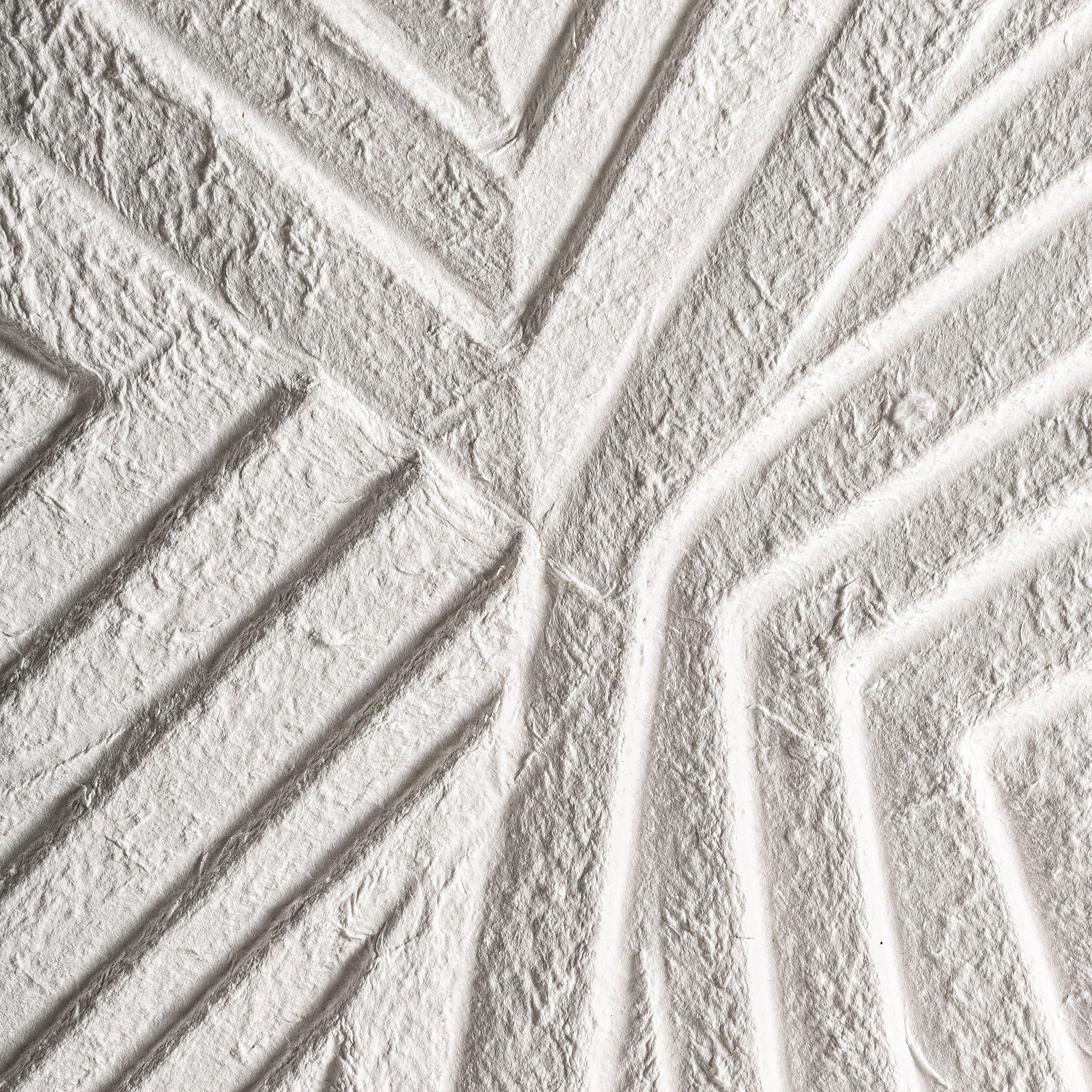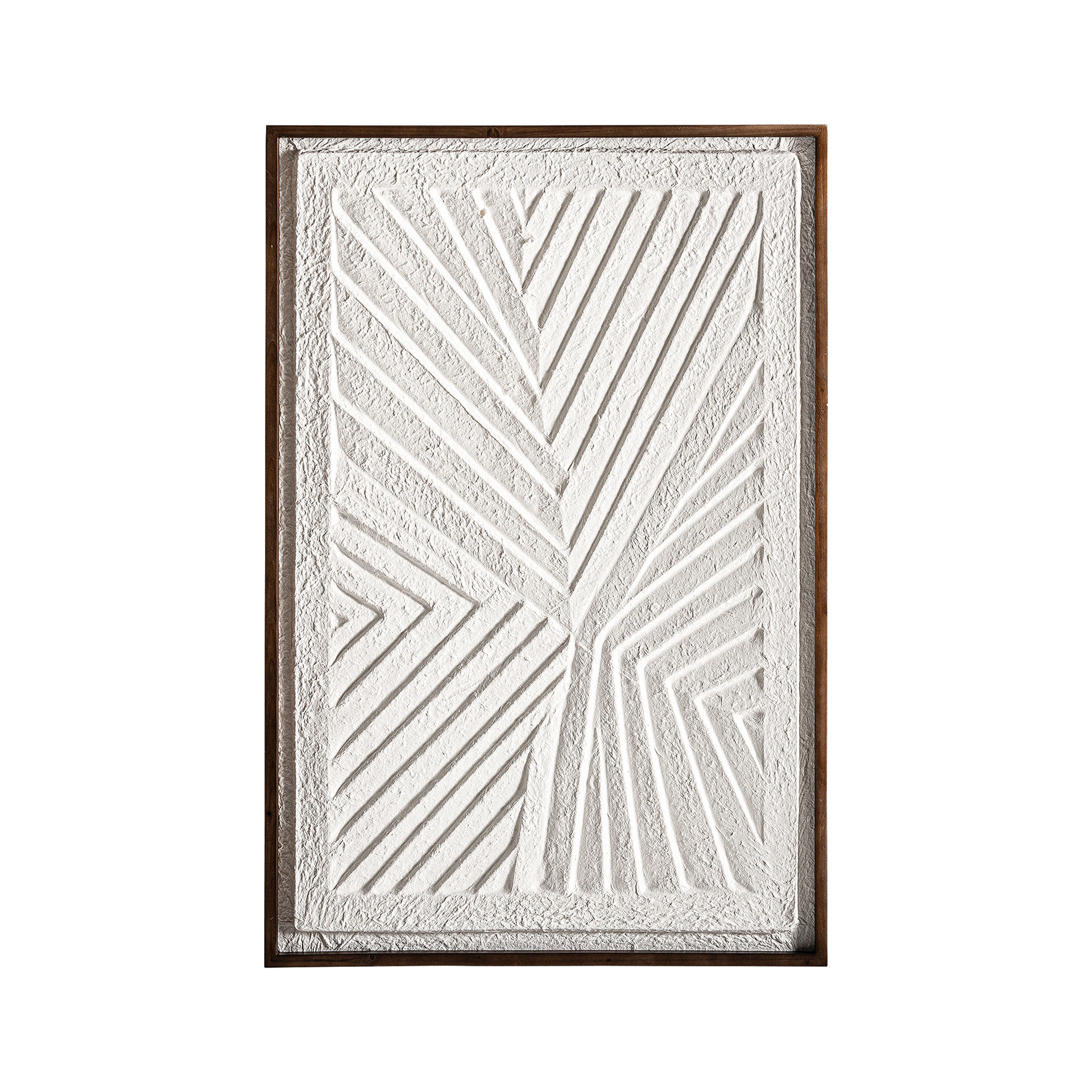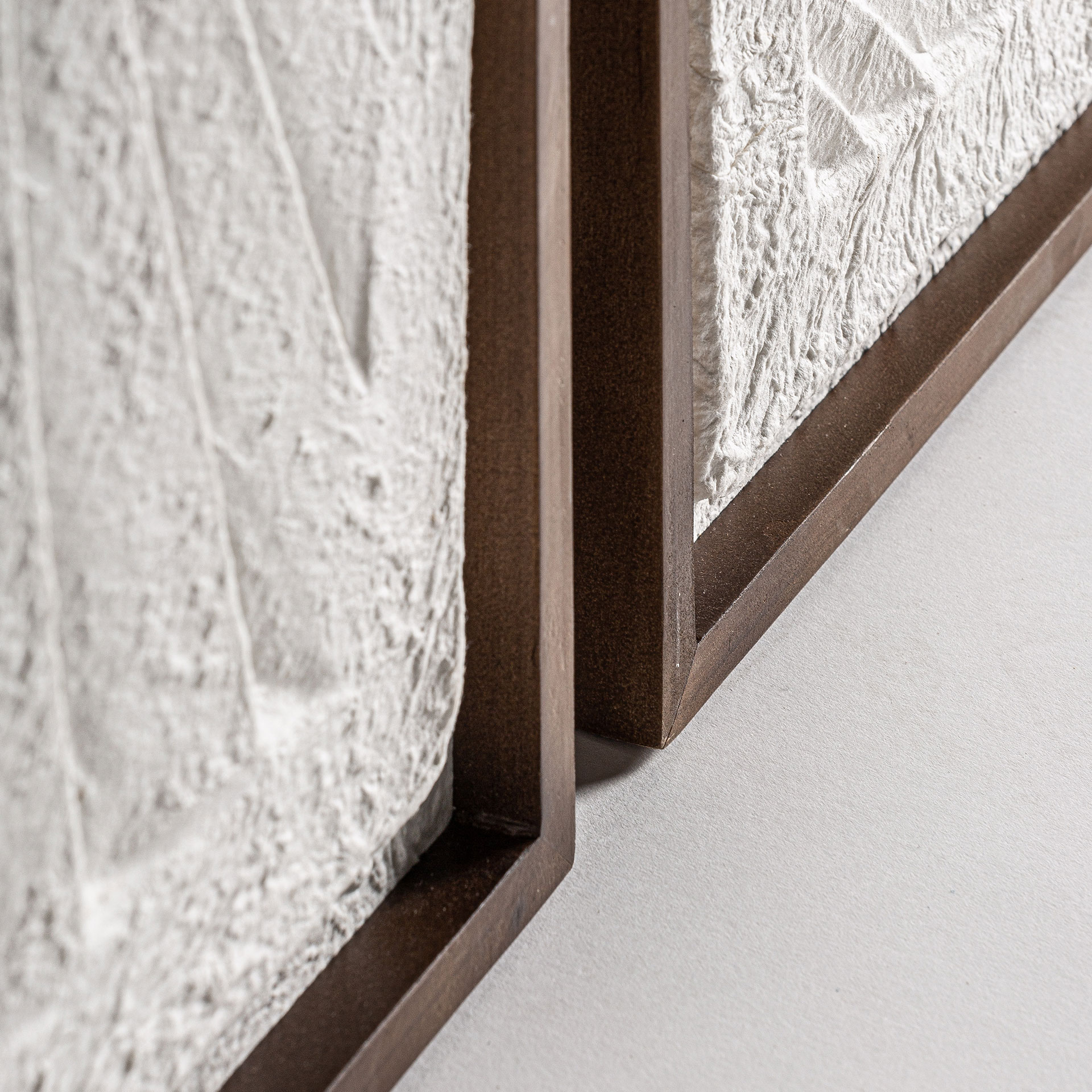 Cuadro Nakal de estilo contemporáneo, fabricado en papel maché en color blanco con acabado artesanal, combinado con madera de paulownia en color marrón.
