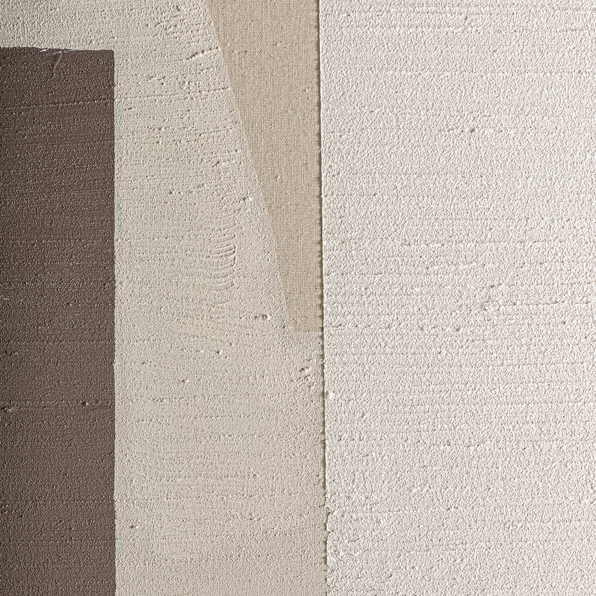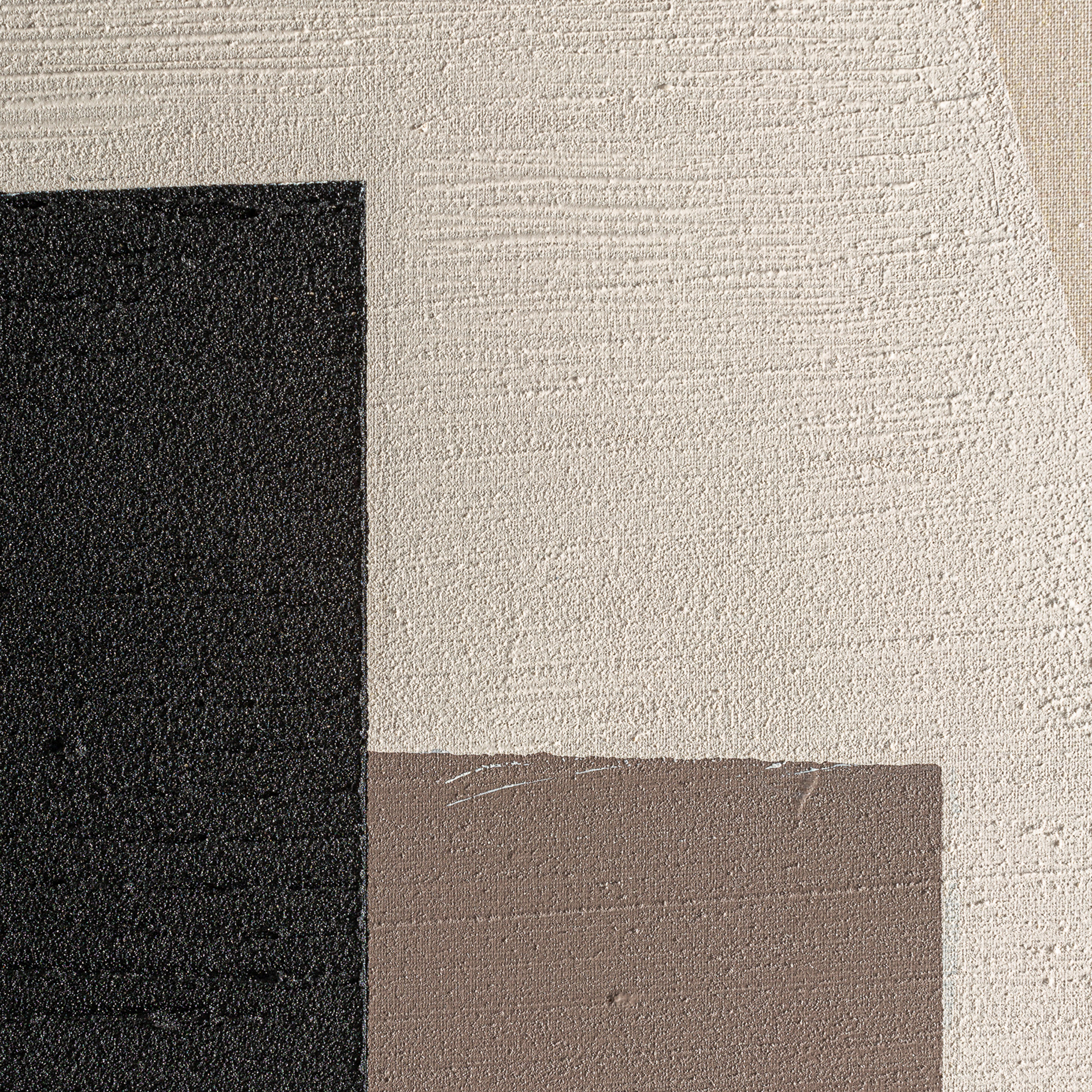 Cuadro Nexo de estilo contemporáneo, fabricado en lienzo en color tonos neutros con acabado artesanal, combinado con madera de pino en color marrón claro.