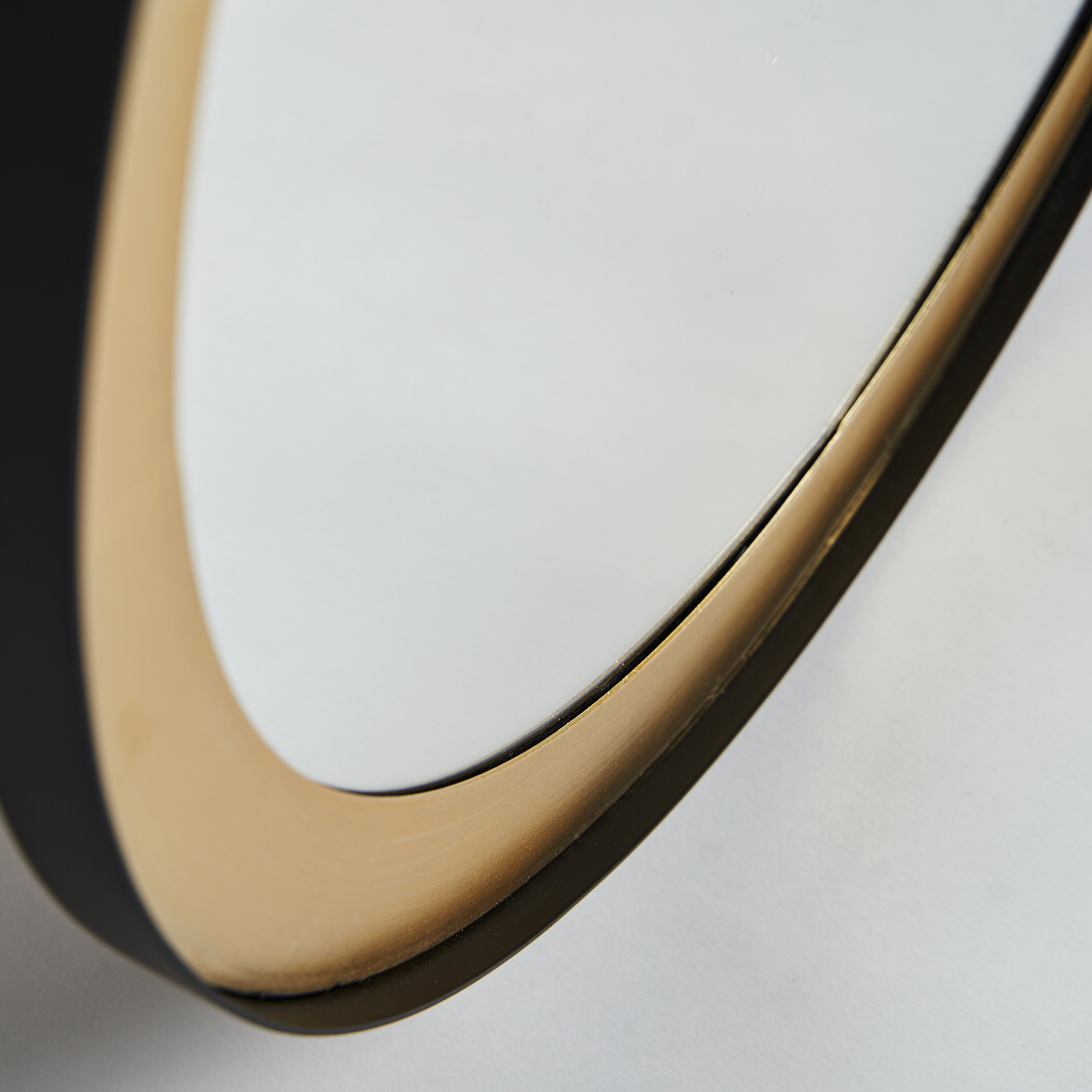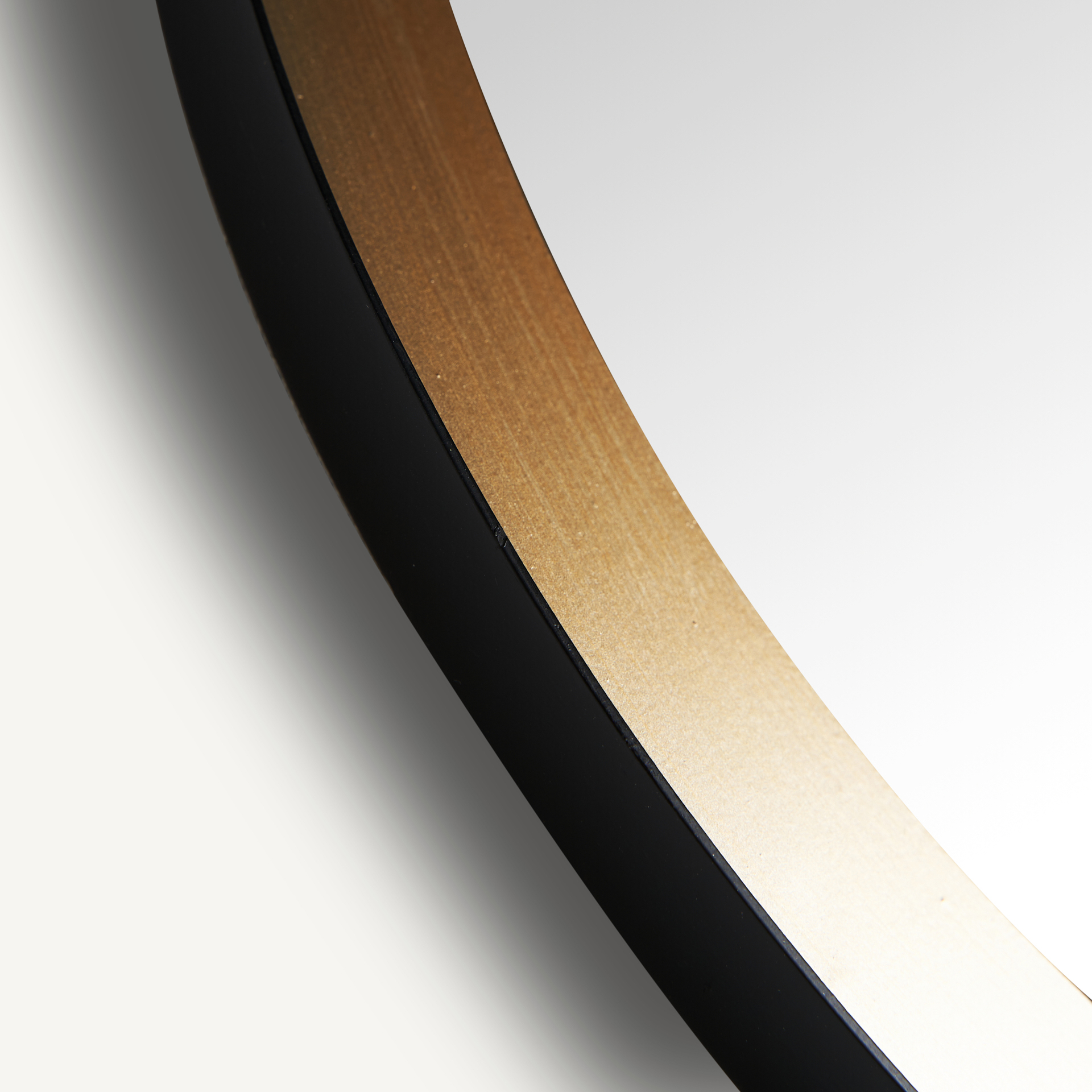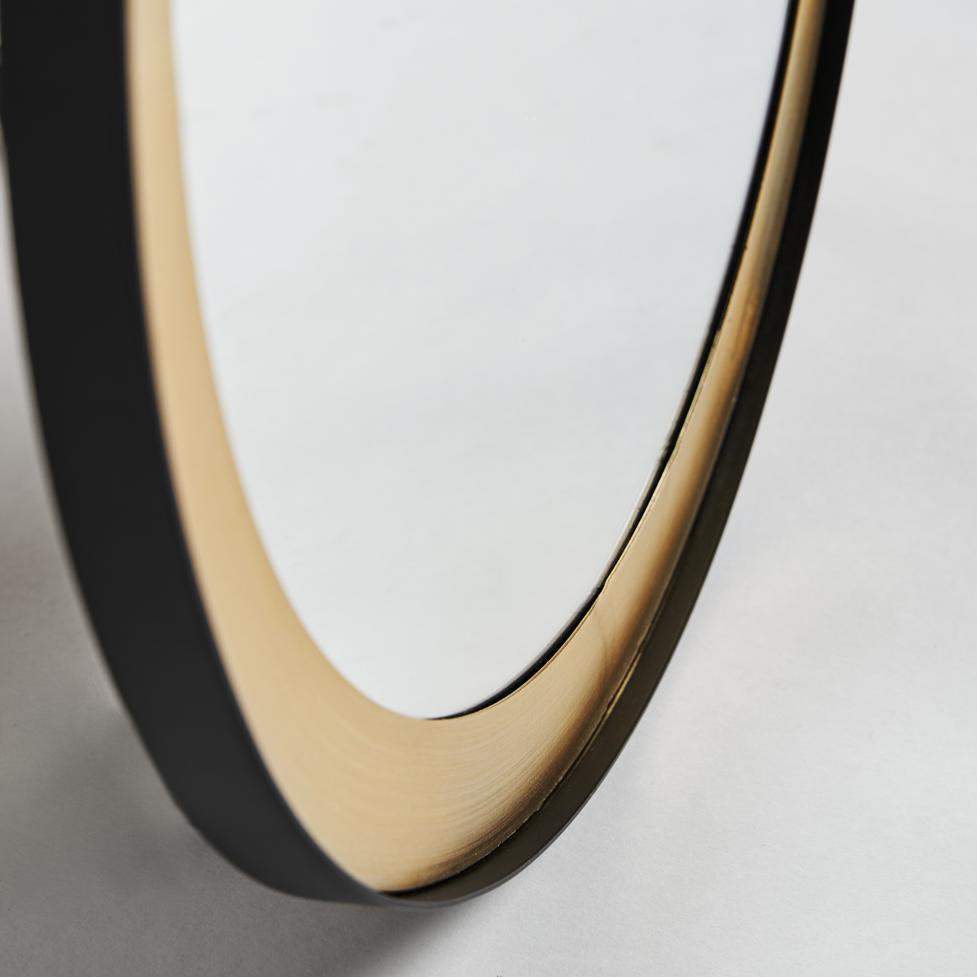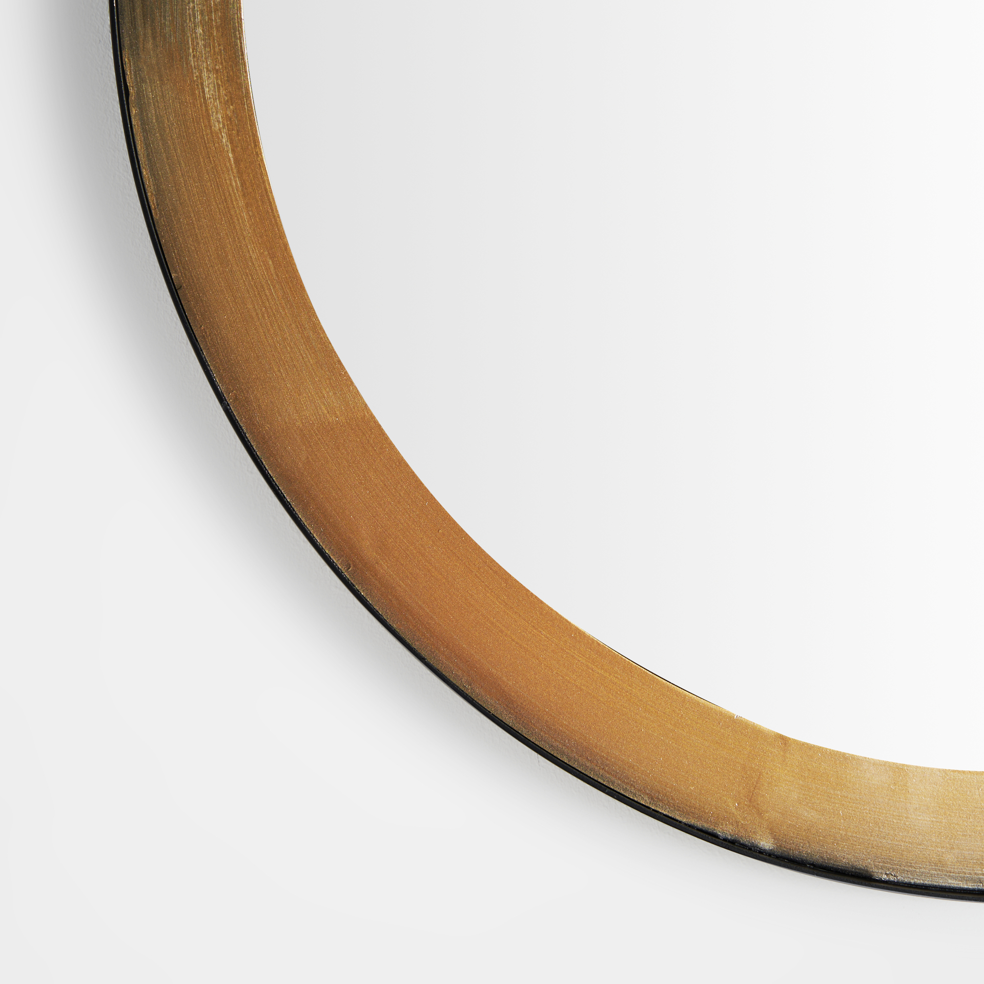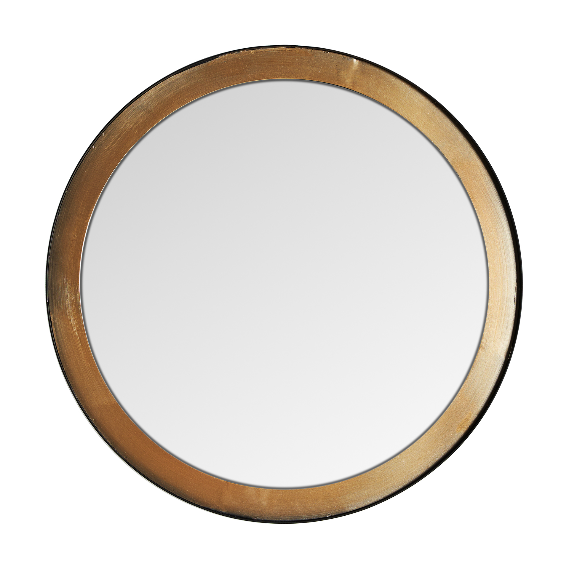 Espejo redonda jacou de estilo art deco, fabricado en hierro en color oro, combinado con madera dm y espejo.