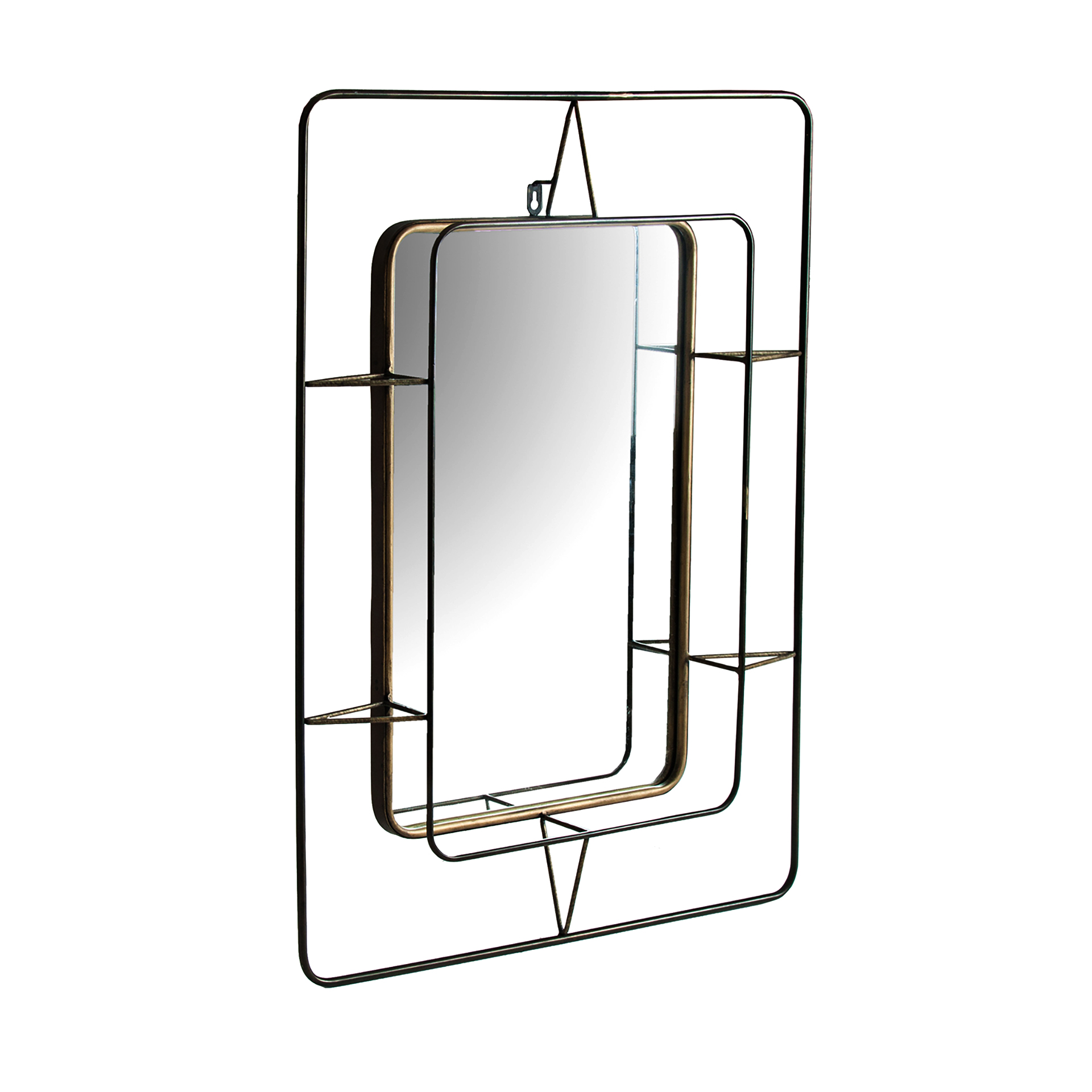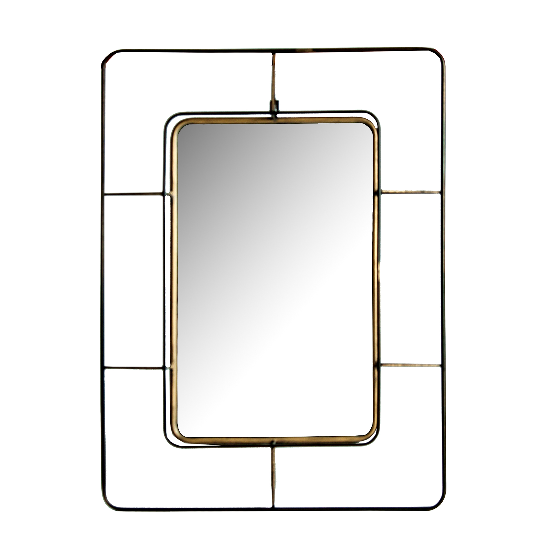 Espejo rectangular veresa de estilo art deco, fabricado en hierro en color oro con acabado viejo, combinado con espejo en color negro.