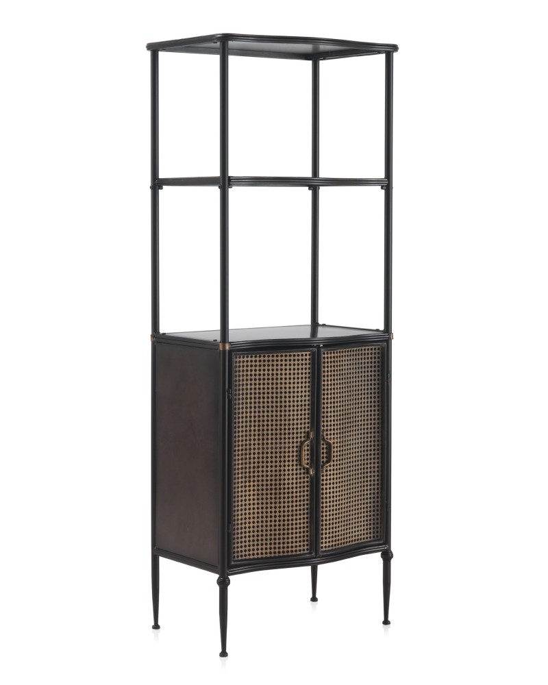 ESTANTE 2 PUERTAS EN BRONCE ESTRUCTURA METAL NEGRA