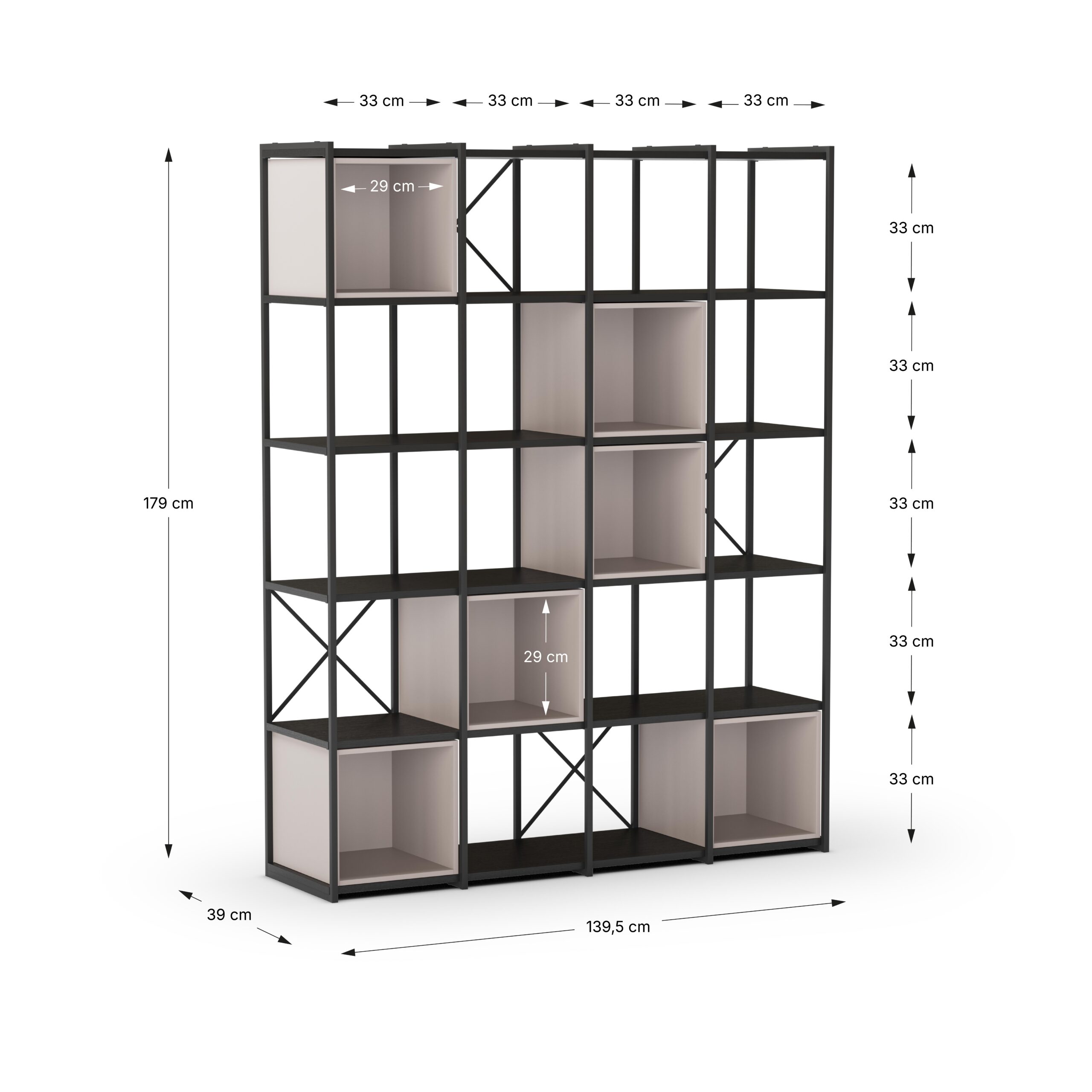 ESTANTERIA ANYA 140CM NEGRO CUBO CREMA MELAMINA/METAL
