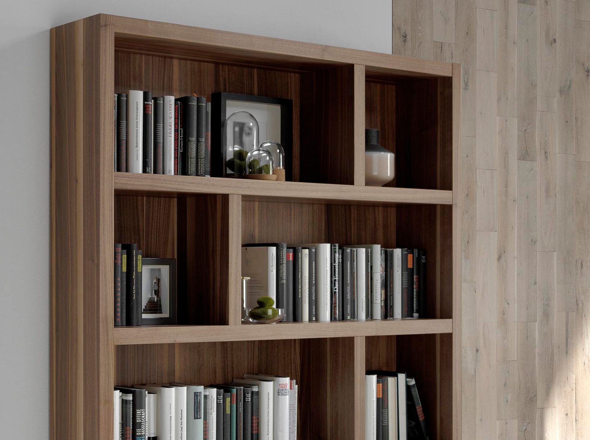Estantería de madera nogal | – Material de las baldas: Madera chapada en nogal natural de 0,5 mm de espesor. – Material de la estructura: Madera chapada en nogal natural de 0,5 mm de espesor.