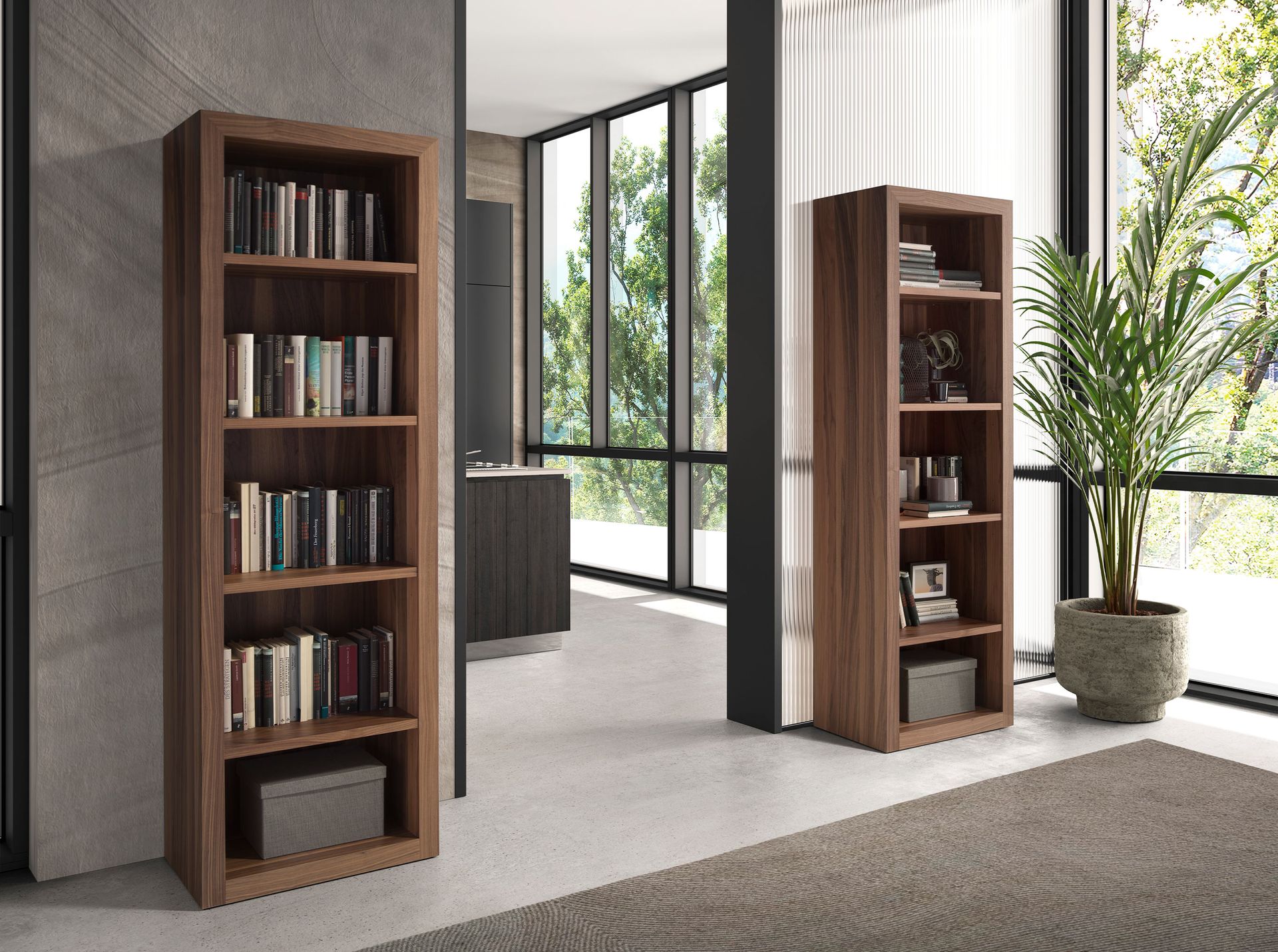 Estantería de madera nogal | – Material de las baldas: Madera chapada en nogal natural de 0,5 mm de espesor. – Material de la estructura: Madera chapada en nogal natural de 0,5 mm de espesor.
