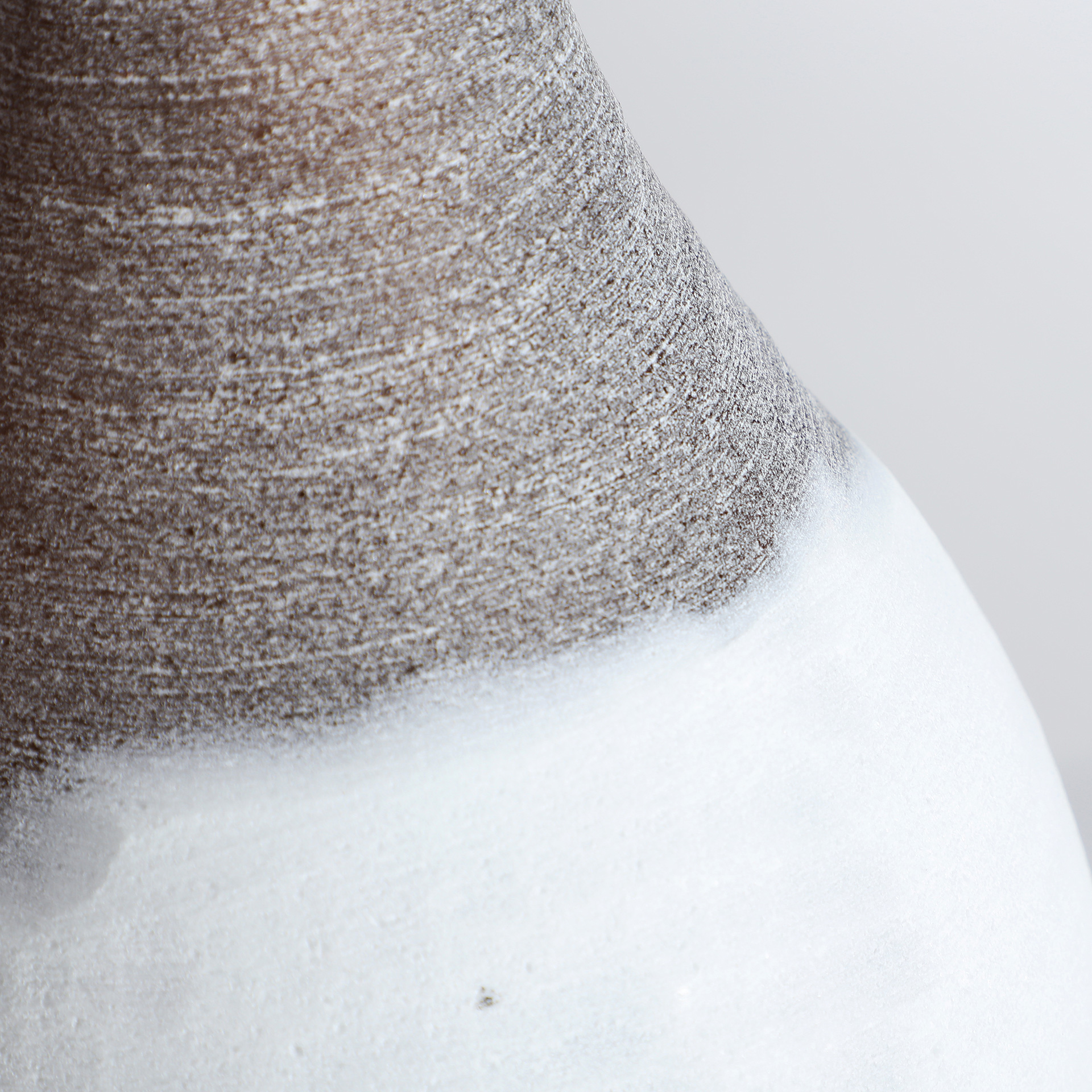 Jarrón Kono de estilo contemporáneo, fabricado en vidrio en color marrón en color blanco.