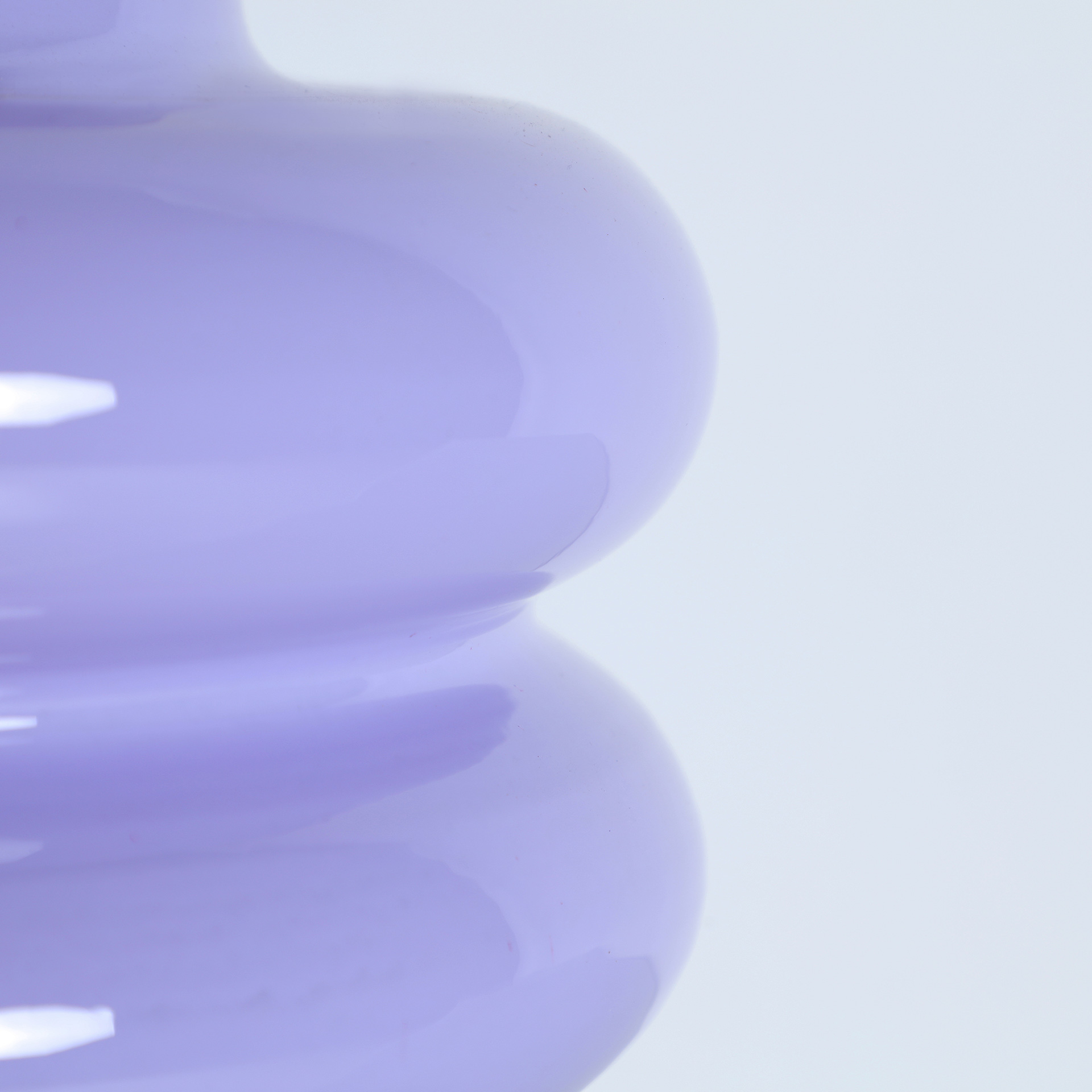 Jarrón Lilya de estilo contemporáneo, fabricado en vidrio en color morado con acabado brillo.