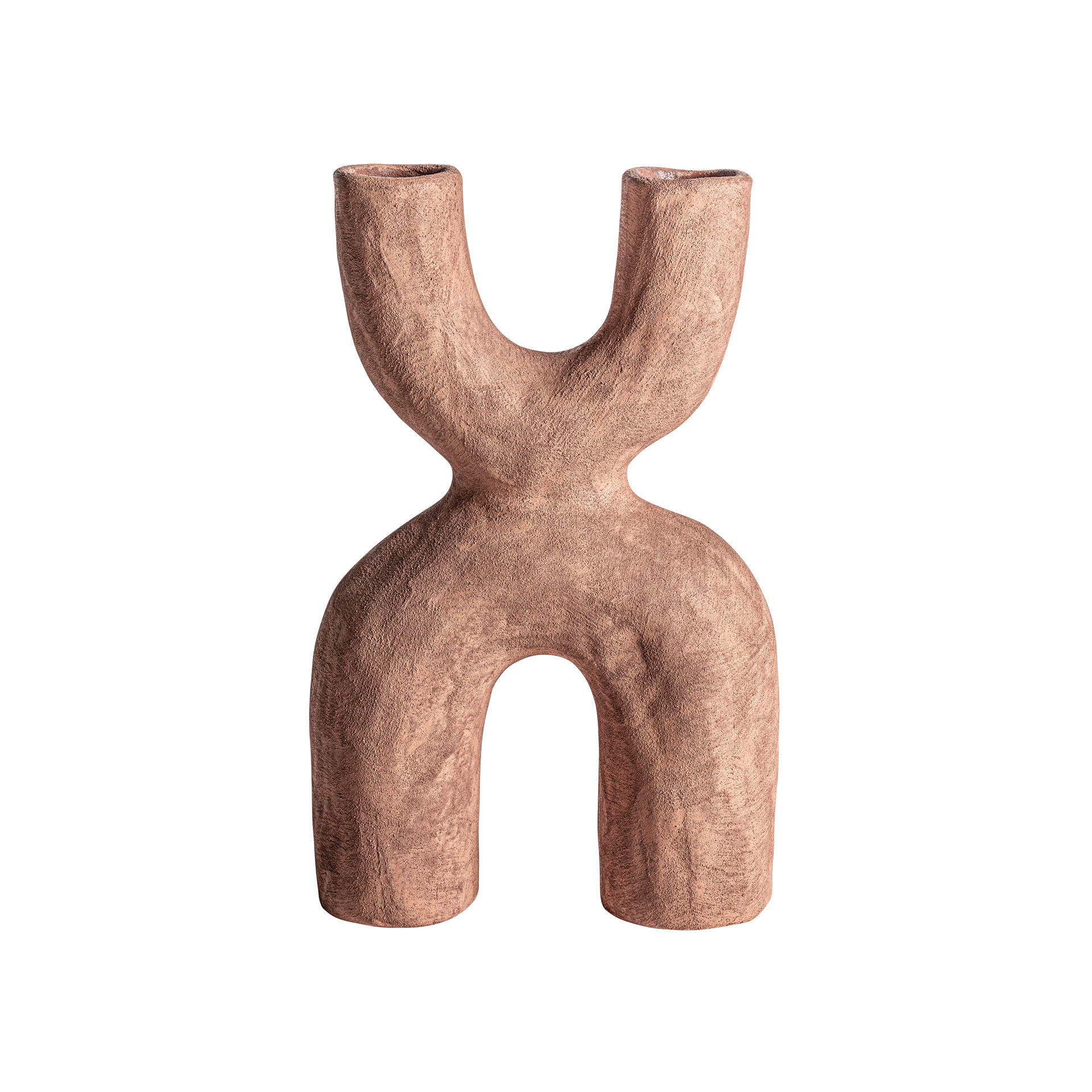 Jarrón irregular mezin de estilo contemporáneo, fabricado en cerámica en color marrón.