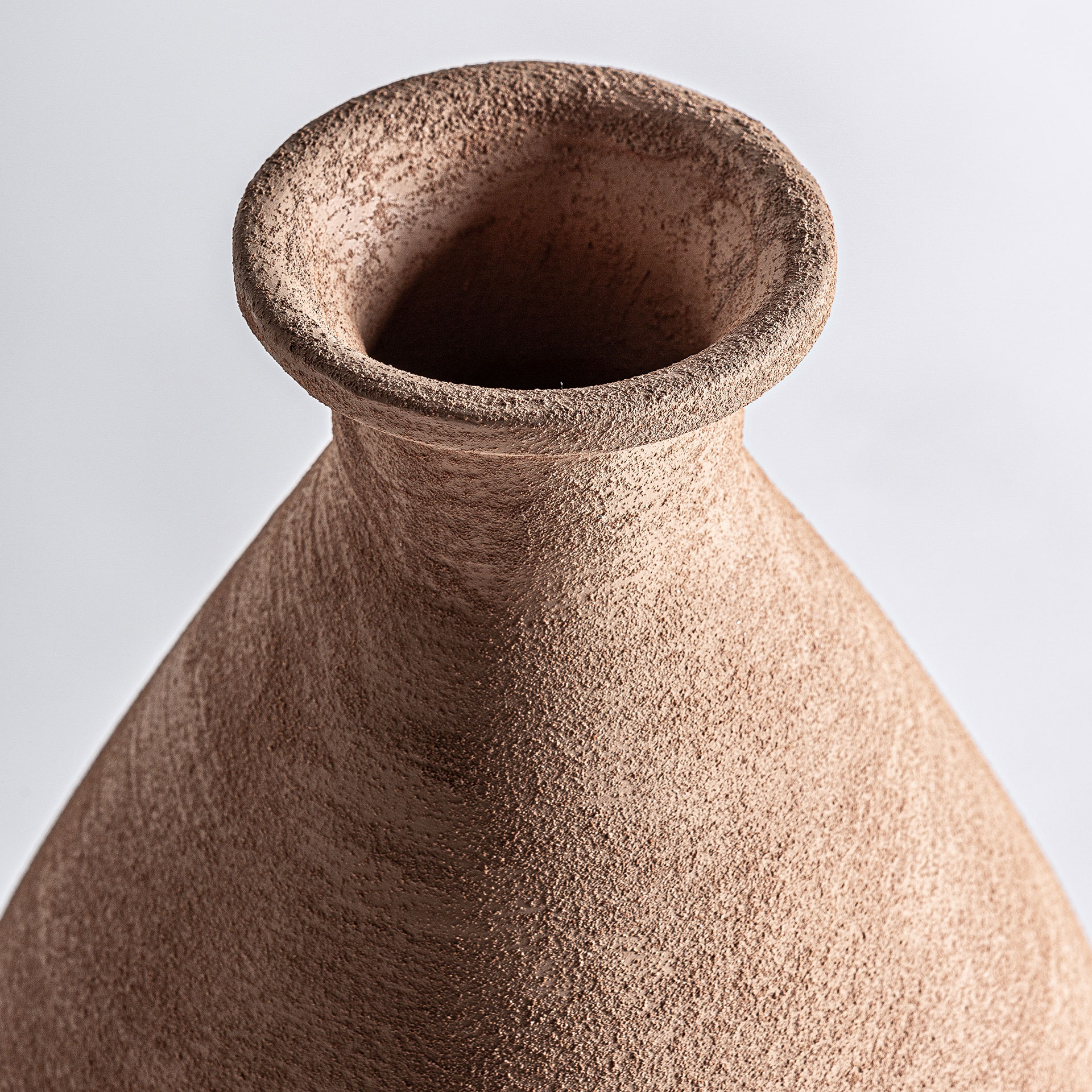 Jarrón irregular nerac de estilo contemporáneo, fabricado en cerámica en color marrón.