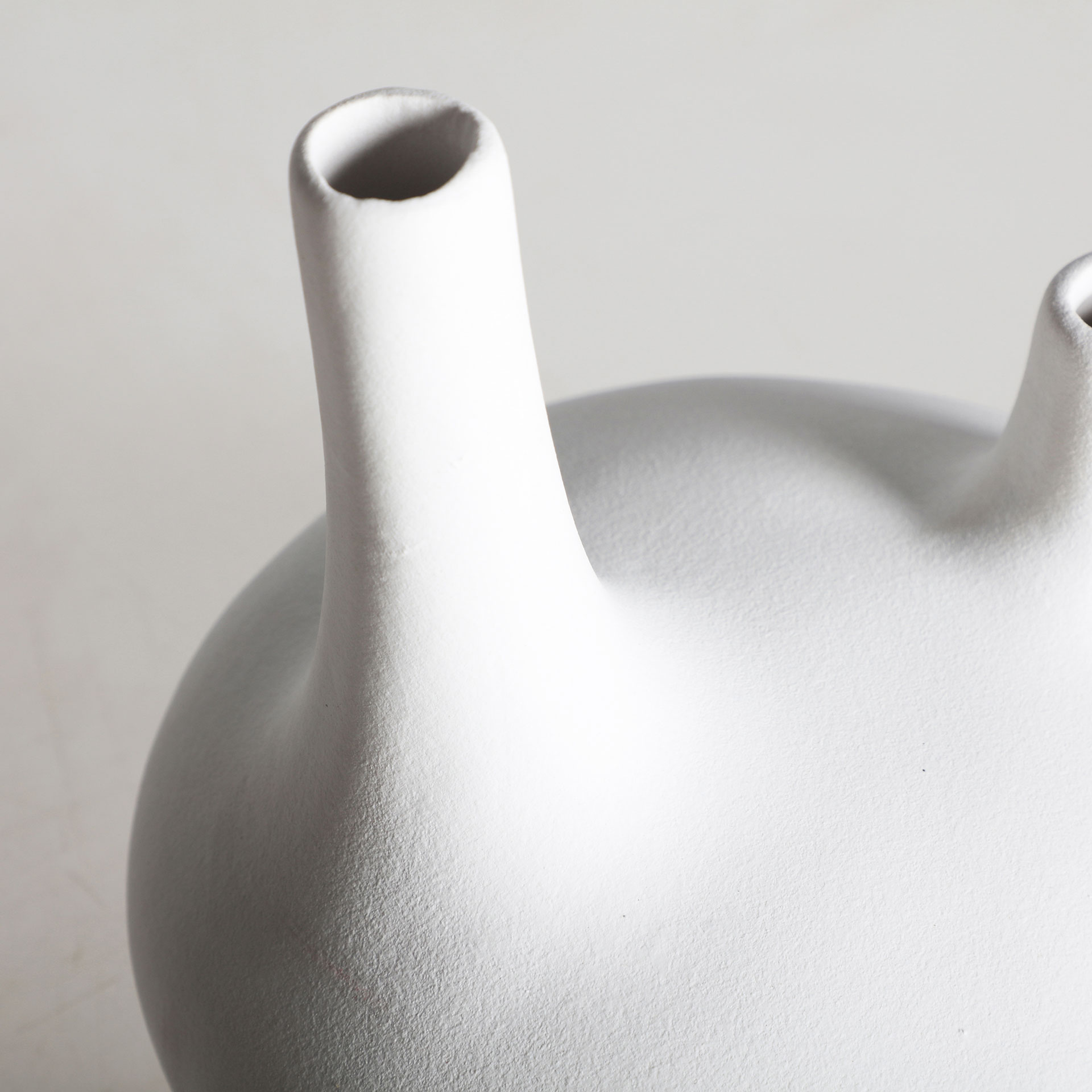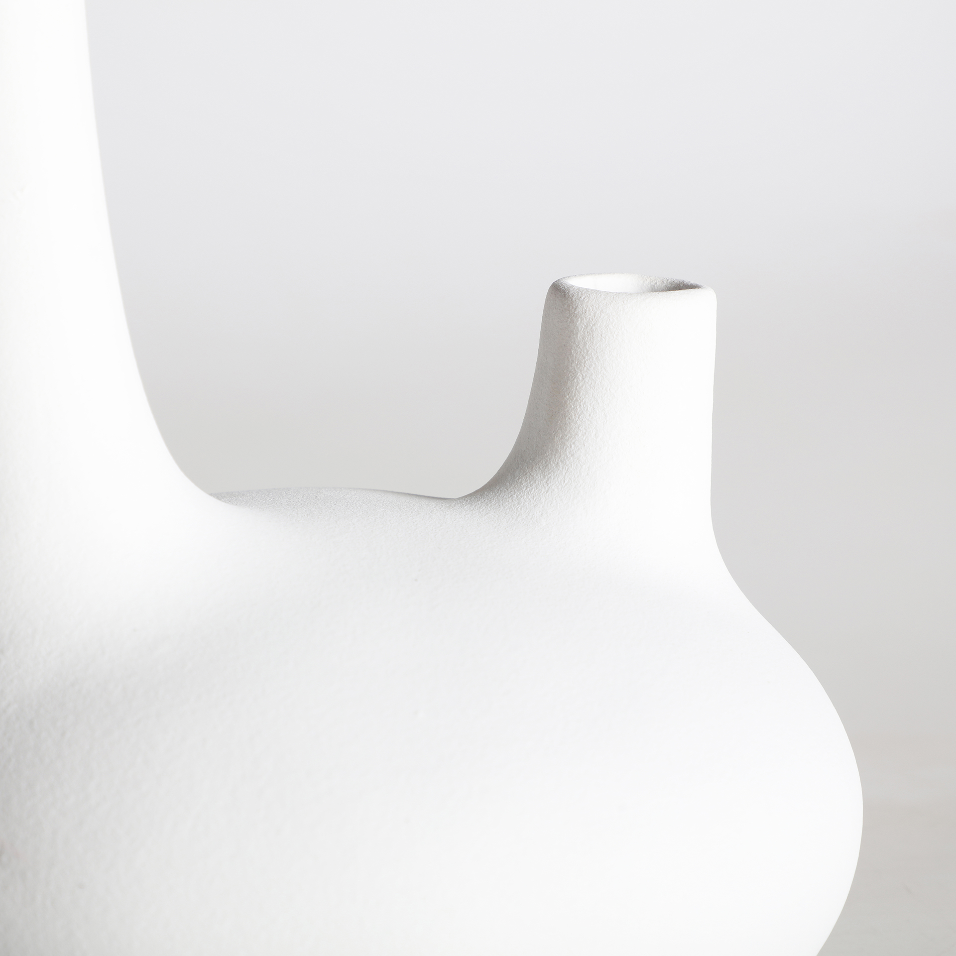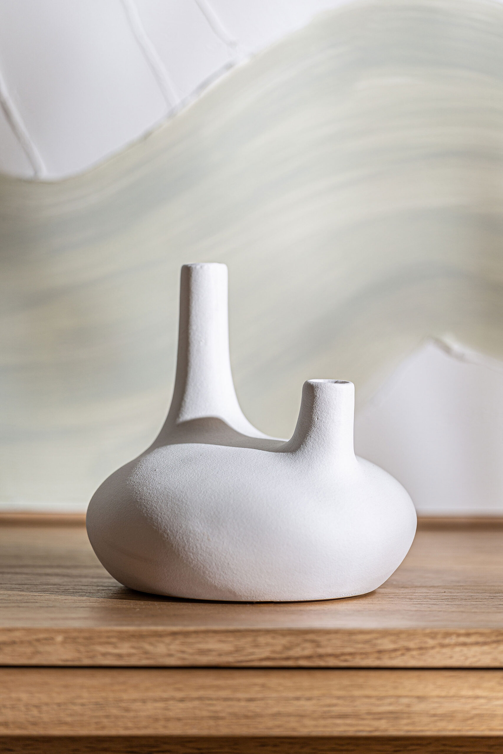 Jarrón irregular zick de estilo contemporáneo, fabricado en cerámica en color blanco.