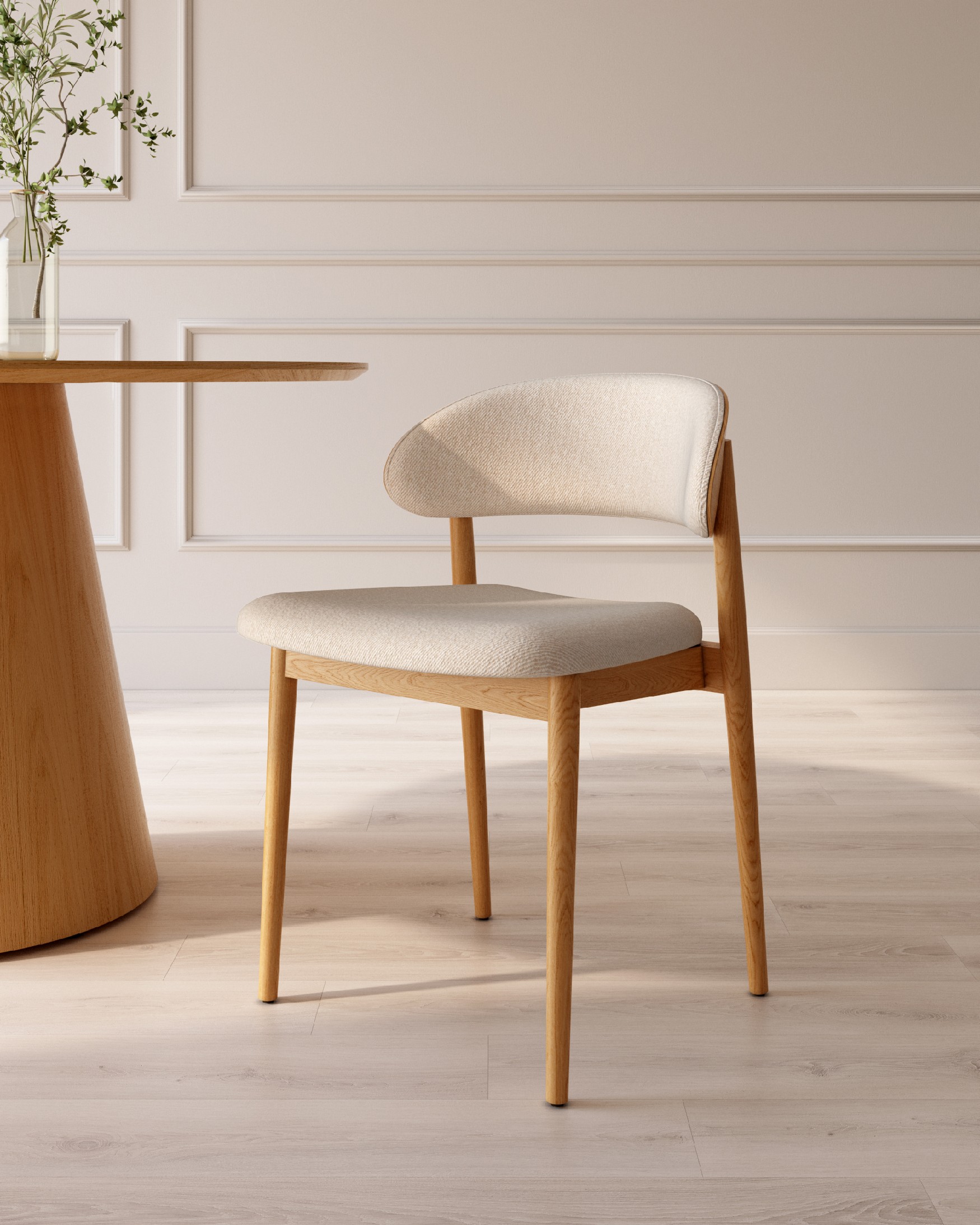 Juego de 2 sillas Ariel con tapizado nácar y estructura roble natural