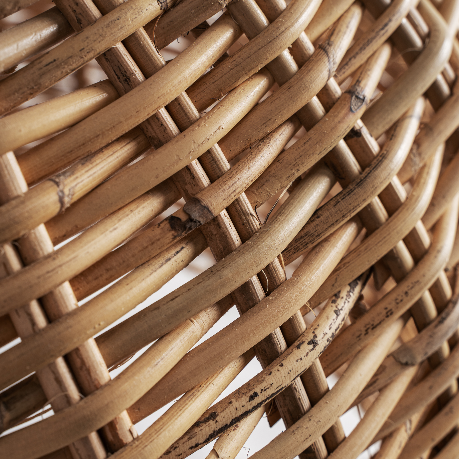 Lámpara de colgar Bell de estilo boho fabricado en ratán en color marrón claro.
