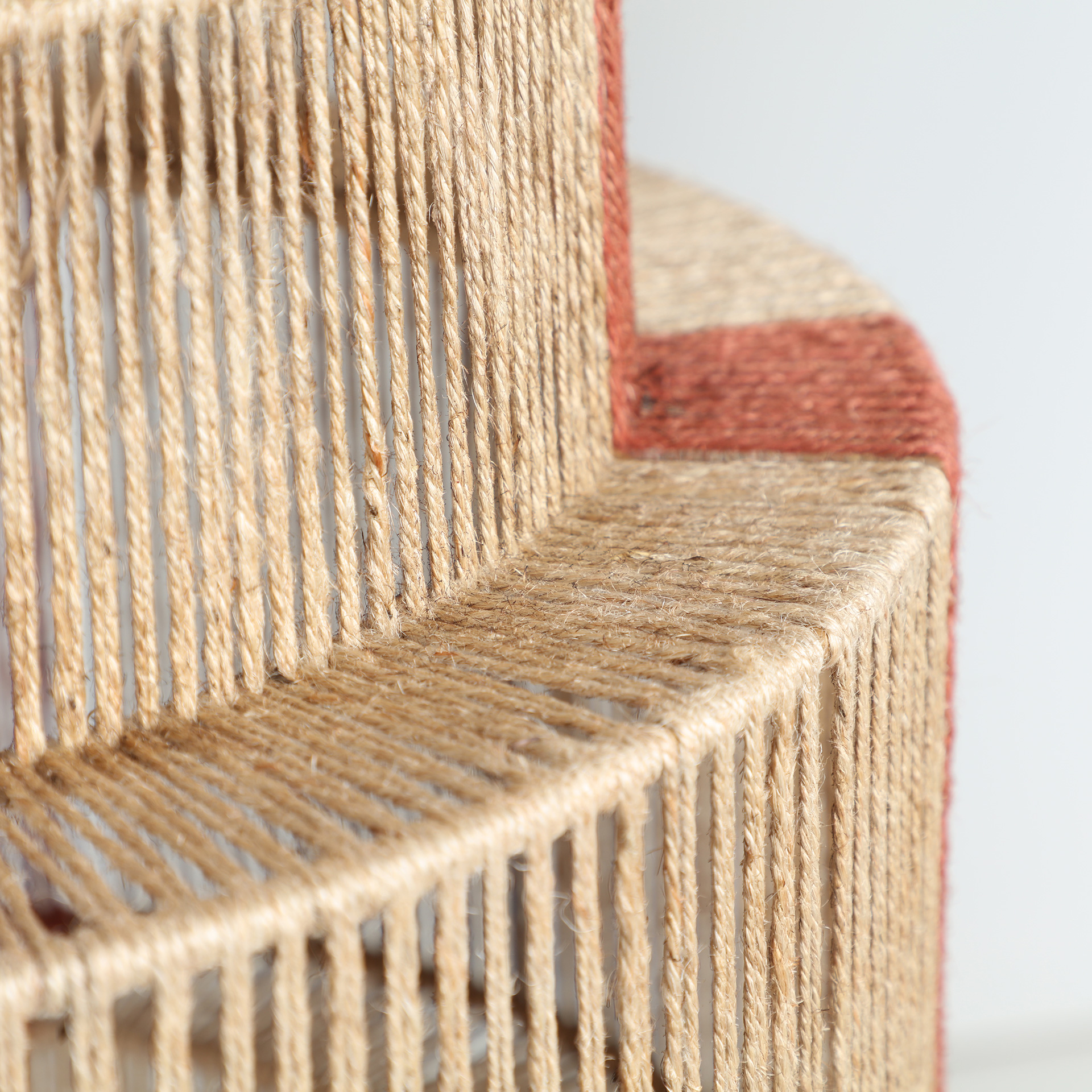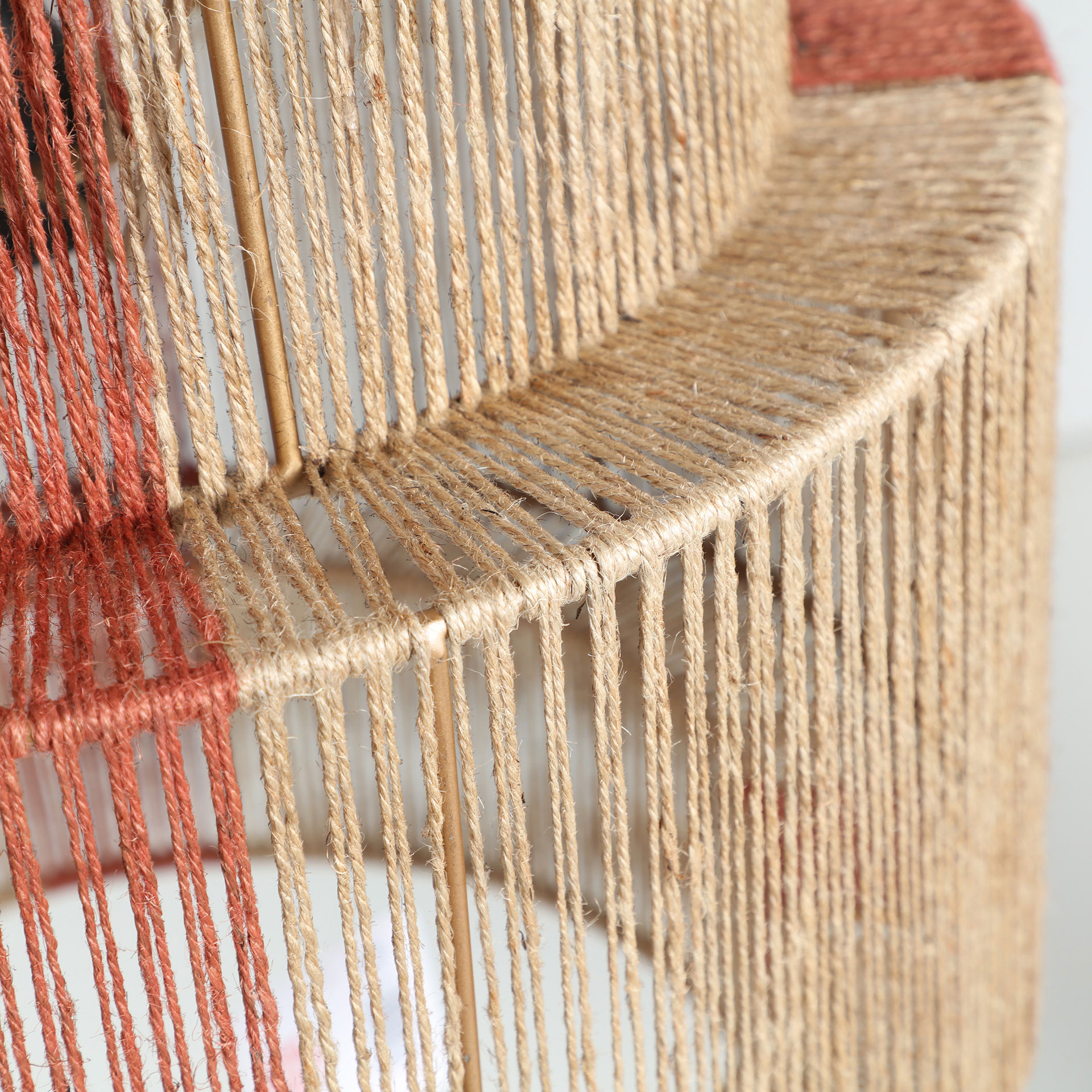 Lámpara de colgar Izamal de estilo boho, fabricado en yute en color marrón claro, combinado con hierro en color marrón en color rojo.