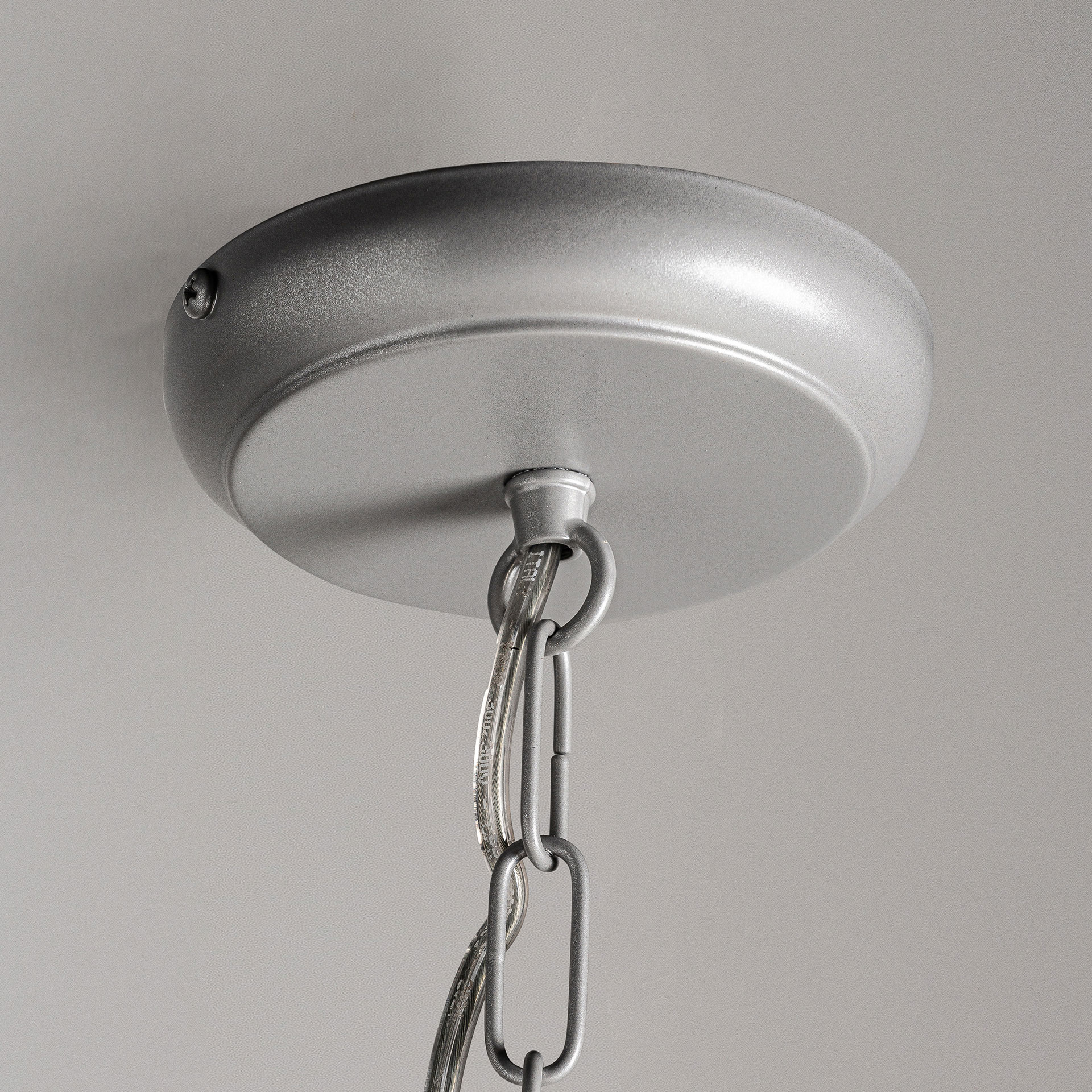 Lámpara de colgar sinko de estilo étnico fabricado en fibra natural en color marrón combinado con hierro.